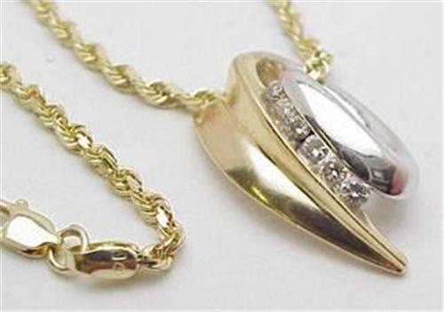 14kt two-tone diamond slide pendant approx .30Ctw on a rope chain 18" 12.1gr