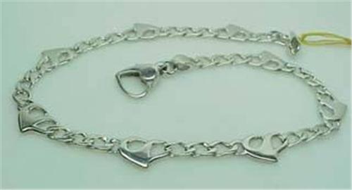14kt white gold anklet with hearts 9" 9.2gr