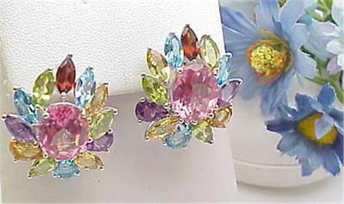 14kt white gold multi color earrings with omega backs. 14.6gr