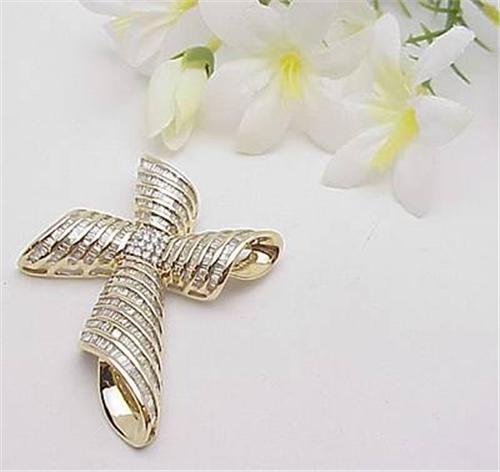 14kt yellow gold baguette diamond cross 4.50Ctw 14.4gr