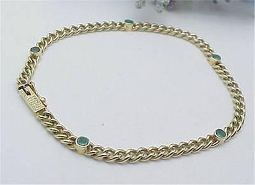 14kt yellow gold bracelet with five bezel set emeralds 8.2gr 7"
