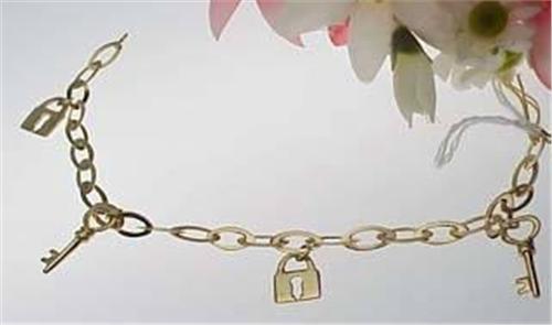 14kt yellow gold bracelet with lock and key charms 6.1gr