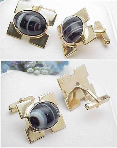 14kt yellow gold cufflinks with agate cabochons. 18.2gr