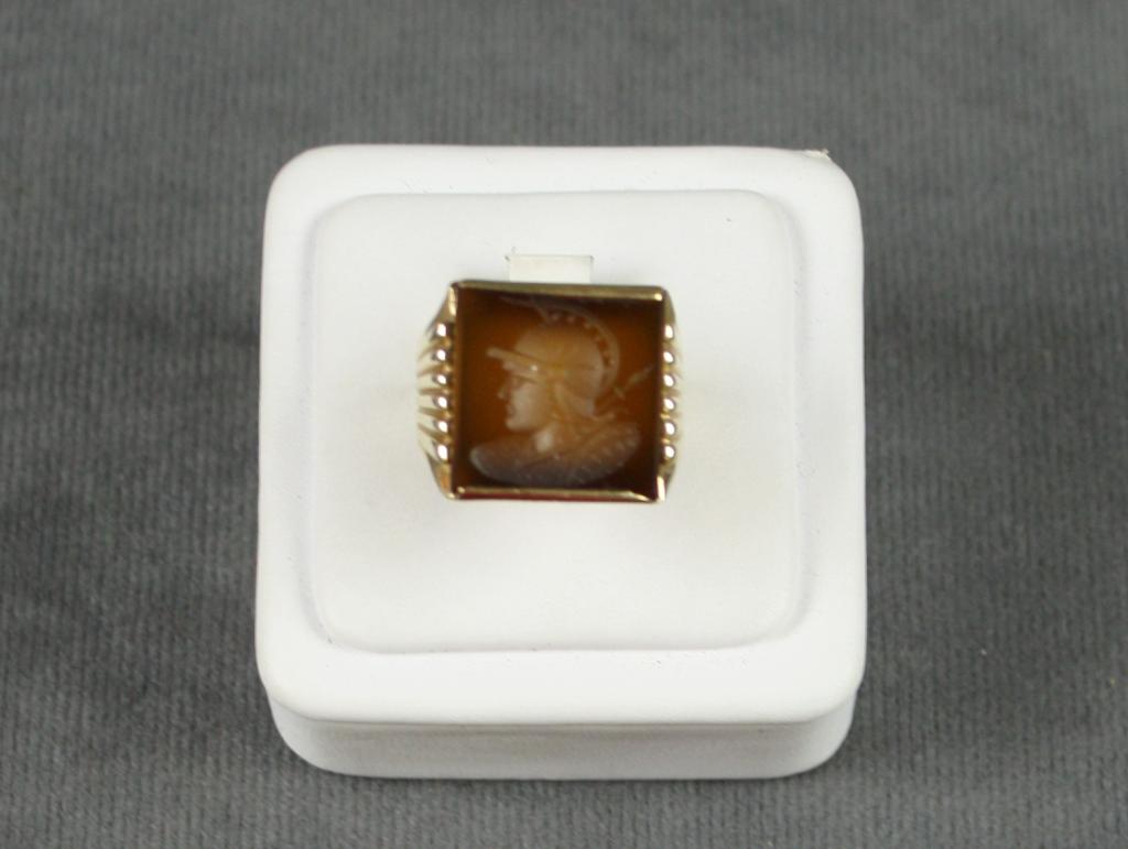 14kt yellow gold mans ring set with a fine  carved agate head of Alexander the Great.  Est. $1,000-$2,000.