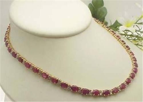14kt yellow gold ruby 46.56Ctw and diamond 2.45Ctw necklace 16"
