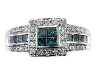 14kw Treated Blue Diamond Ring - 4.54 Grams - 44 Diamonds 0.69ctw