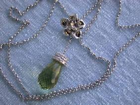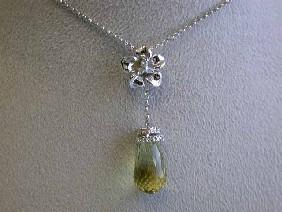 14k White Gold Necklace with Light Quartz - 4.04 carats and Diamond - 0.10 carat, 24 stones, G color and VS clarity and it weighs 3.06 grams