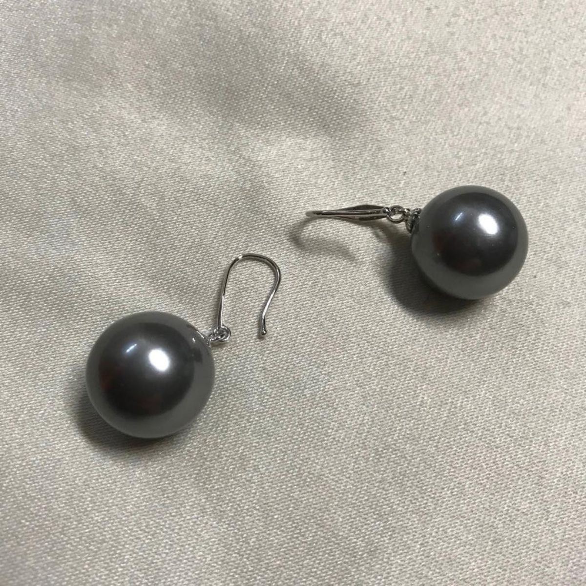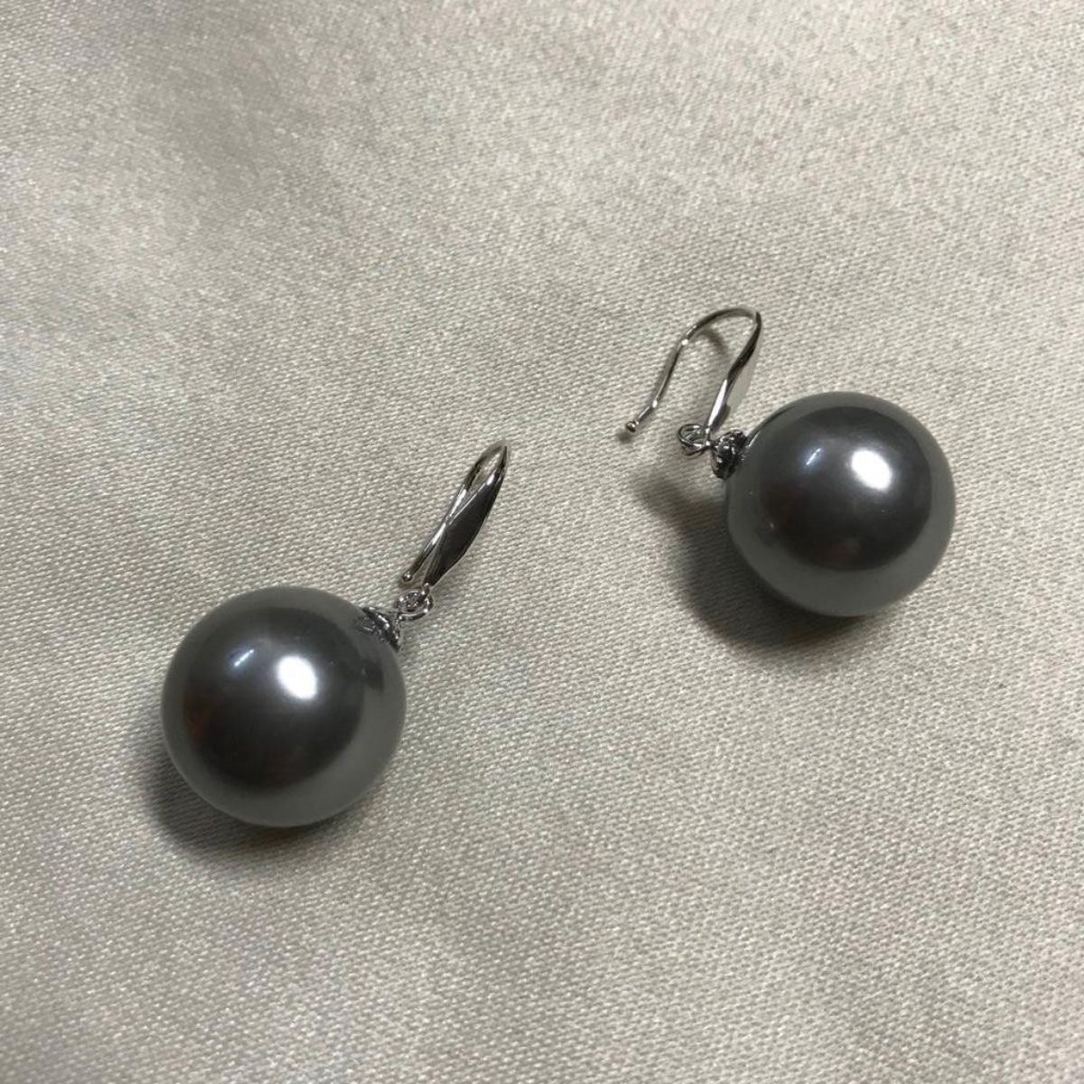 Large size ( 14mm ) grey shell pearl silver hook drop earrings.Â