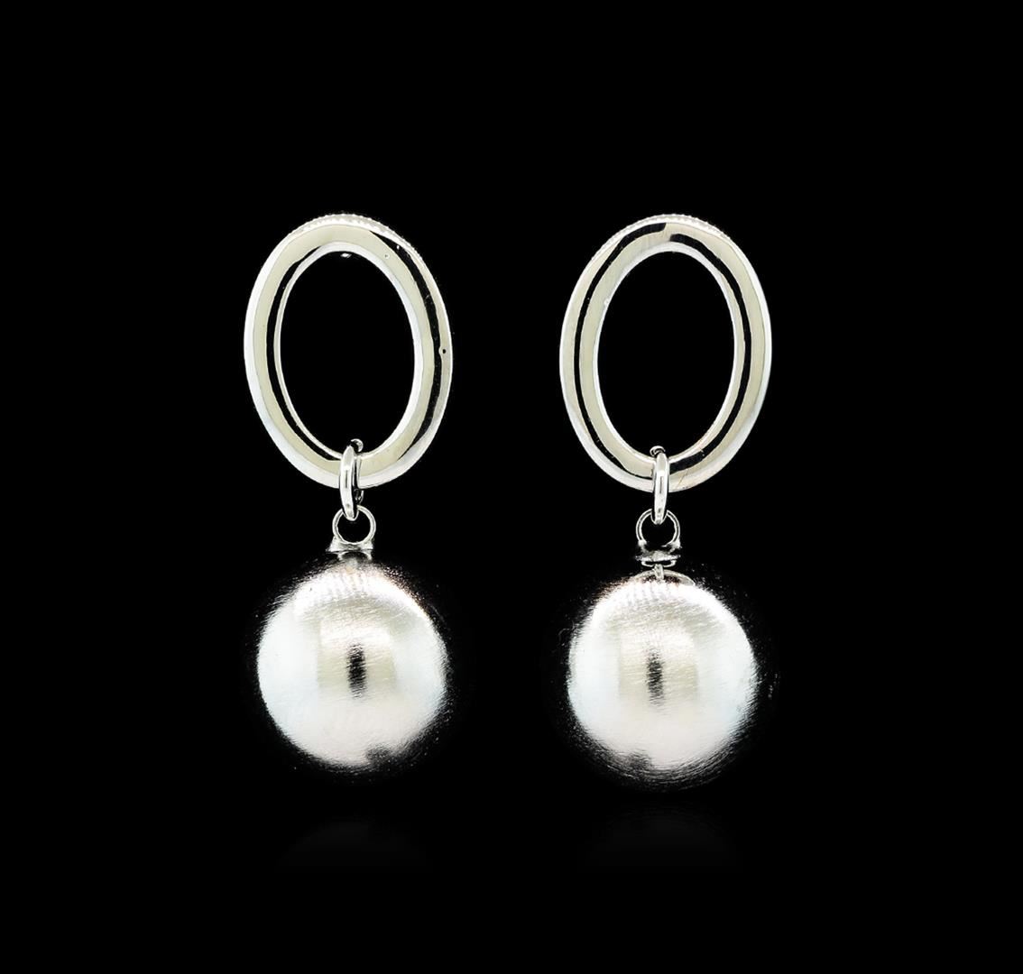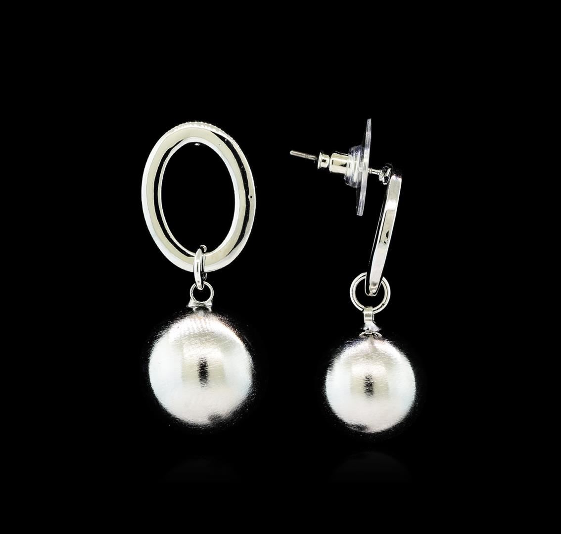 High end designer jewelry. 14mm Satin Bead and Glossy Post Earrings - Rhodium Plated. Rhodium Plated Post/ Stud. 1.25inches. Silver.