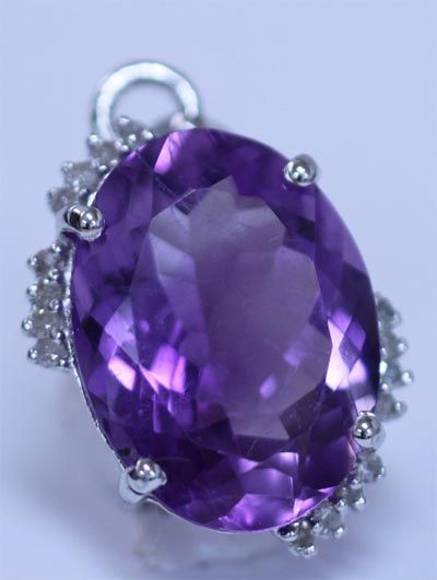 15.00 CTW AMETHYST AND DIAMOND PENDANT .925 STERLING SI **|**|** 15.00 CTW AMETHYST AND DIAMOND PENDANT .925 STERLING SILVER; CENTERSTONE 6.00 CTW; DIAMOND 0.12 CTW ; MSRP: $550