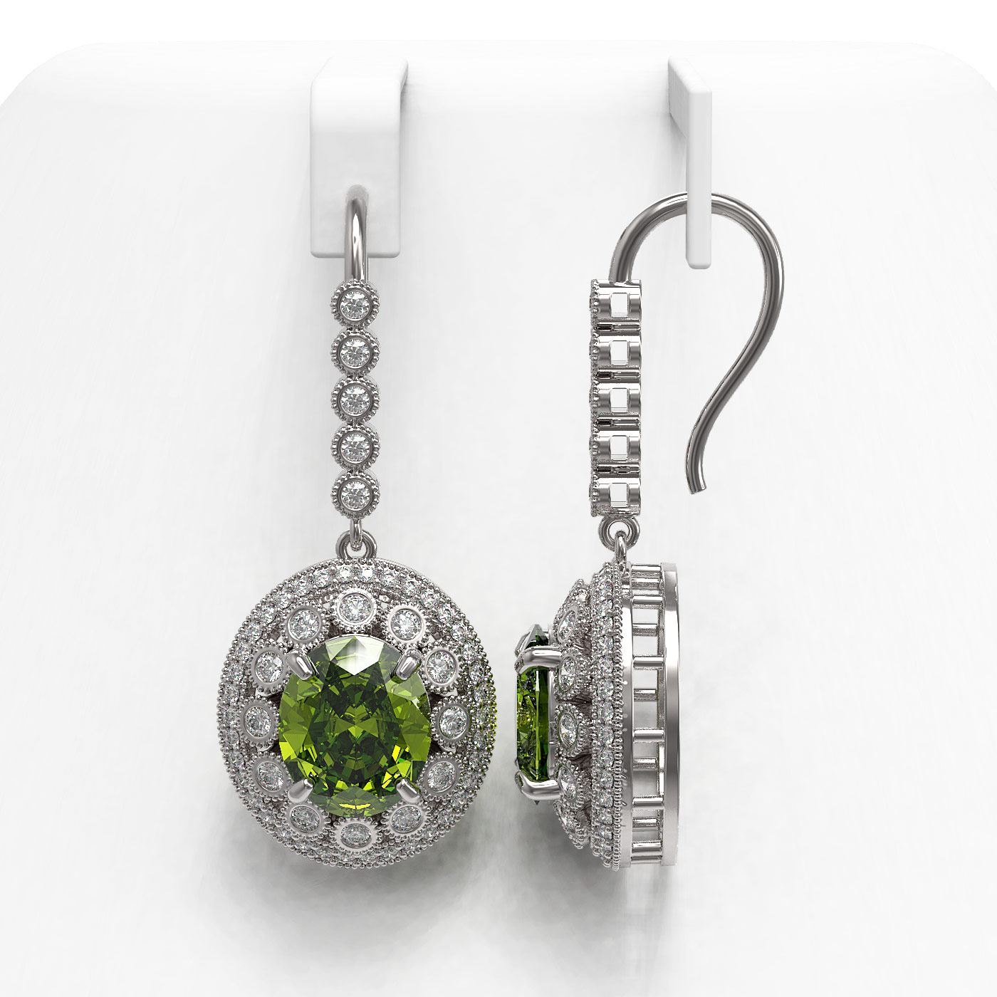 15.02 ctw Tourmaline & Diamond Victorian Earrings 14K White Gold