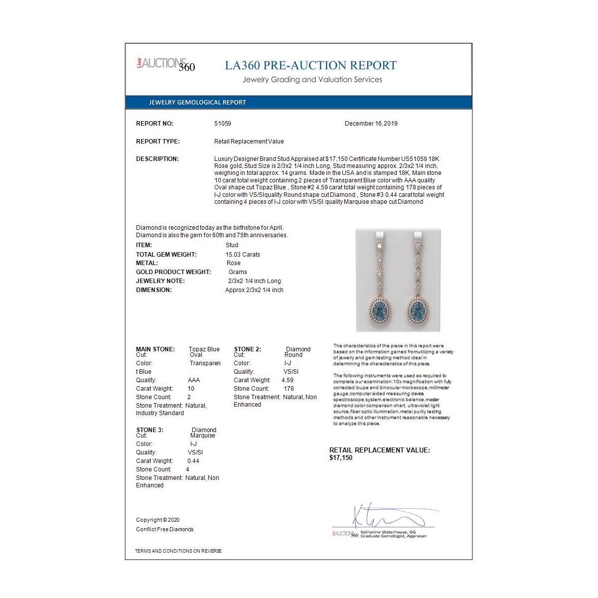 REF-445M8G - SKU: 51059 ---- 15.03 ctw Blue Topaz & Diamond Earrings 18K Rose Gold