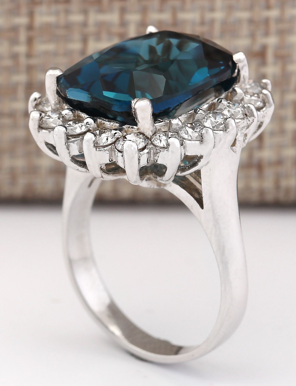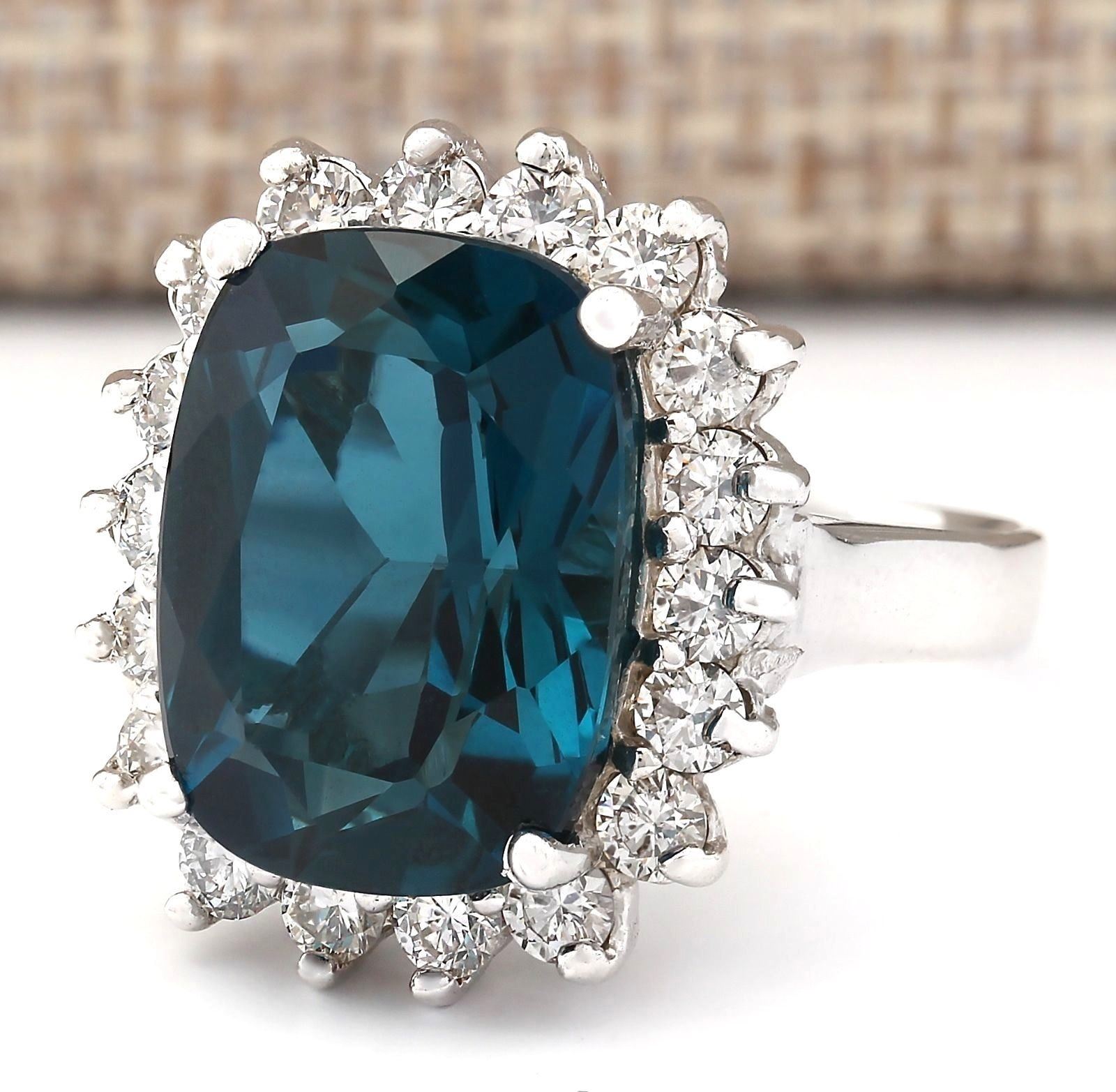 15.04 CTW Natural London Blue Topaz And Diamond Ring In18K Solid White Gold