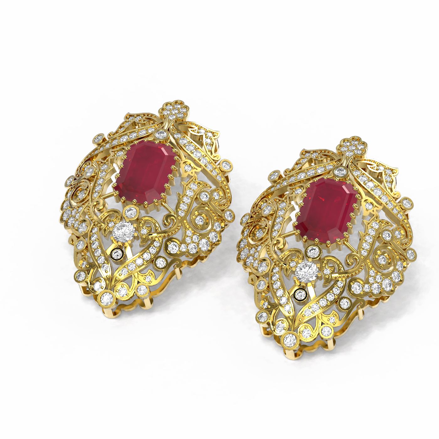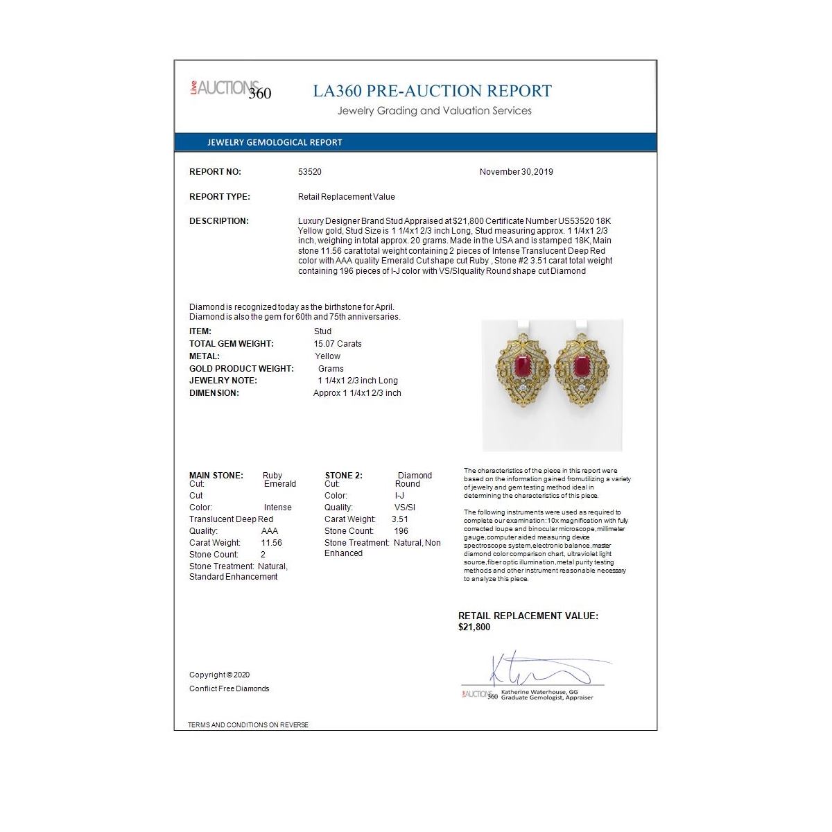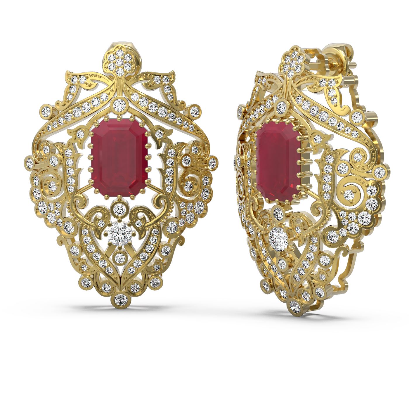 REF-521X8A - SKU: 53520 ---- 15.07 ctw Ruby & Diamond Earrings 18K Yellow Gold