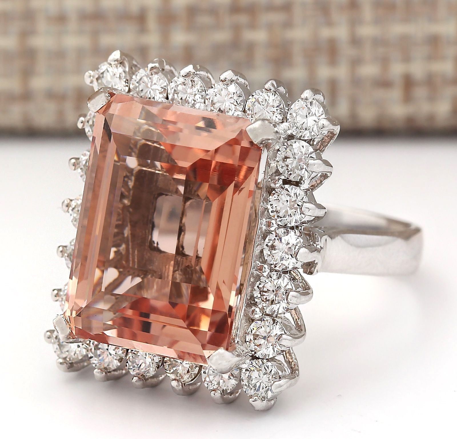 15.08 CTW Natural Morganite And Diamond Ring In 14K White Gold