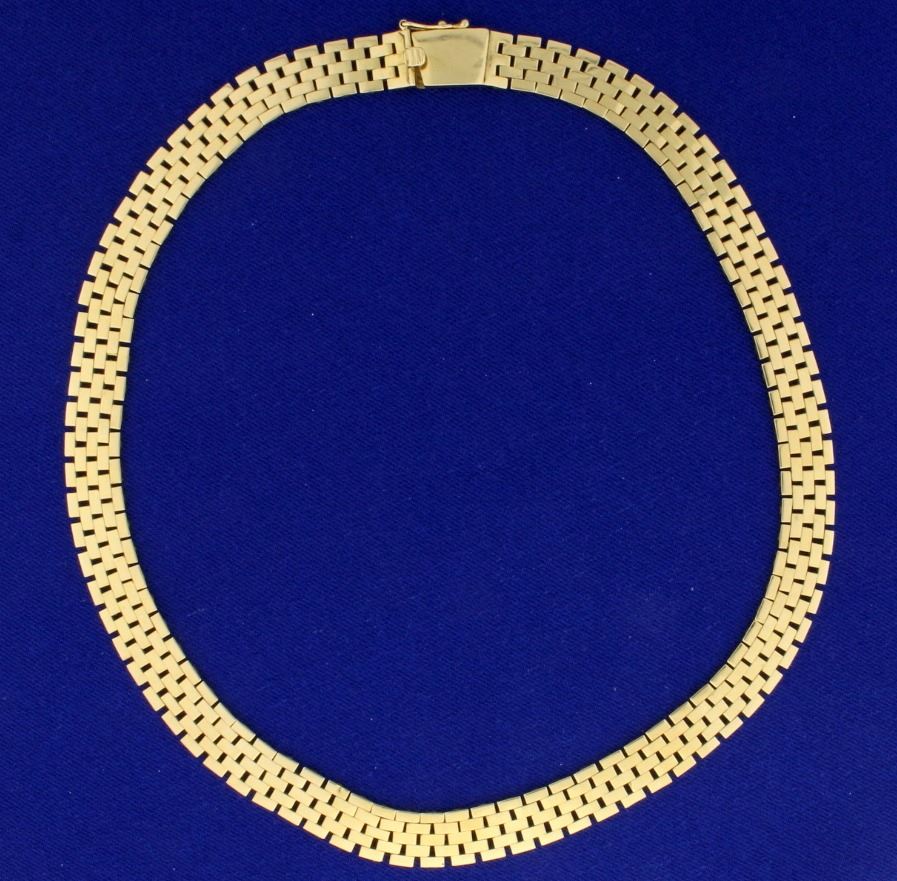In 14k yellow gold. 8.8mm thick. Safety clasp. 30.0g.