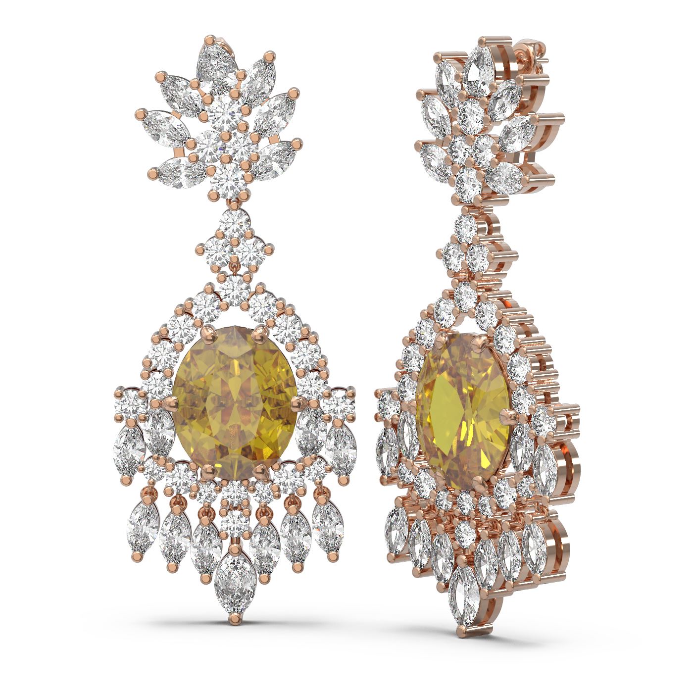SKU: 60768 ---- 15.11 ctw Canary Citrine & Diamond Earrings 18K Rose Gold
