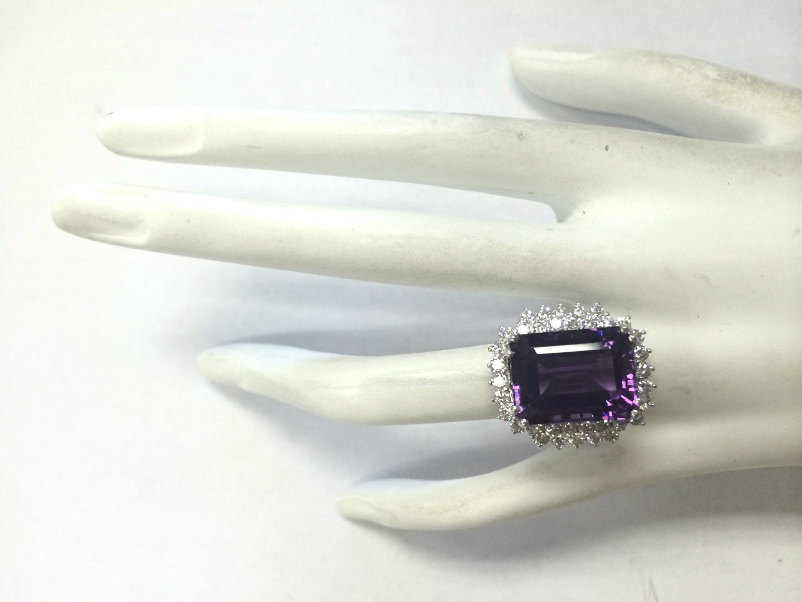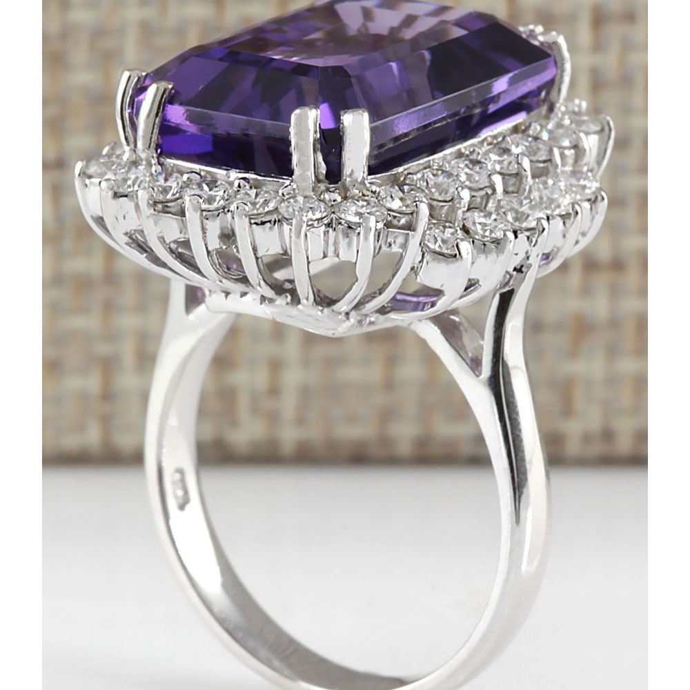 15.12 CTW Natural Amethyst And Diamond Ring In 18K Solid White Gold