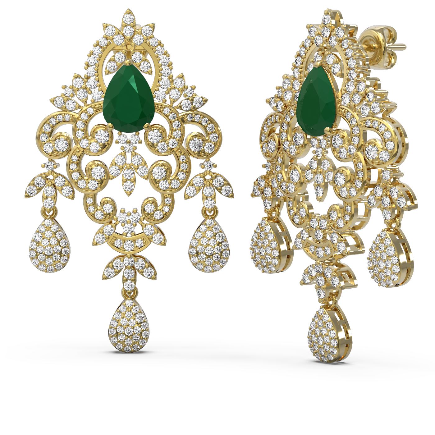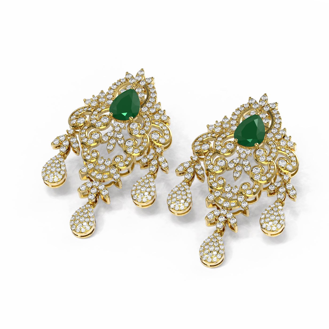 SKU: 51213 ---- 15.15 ctw Emerald & Diamond Earrings 18K Yellow Gold