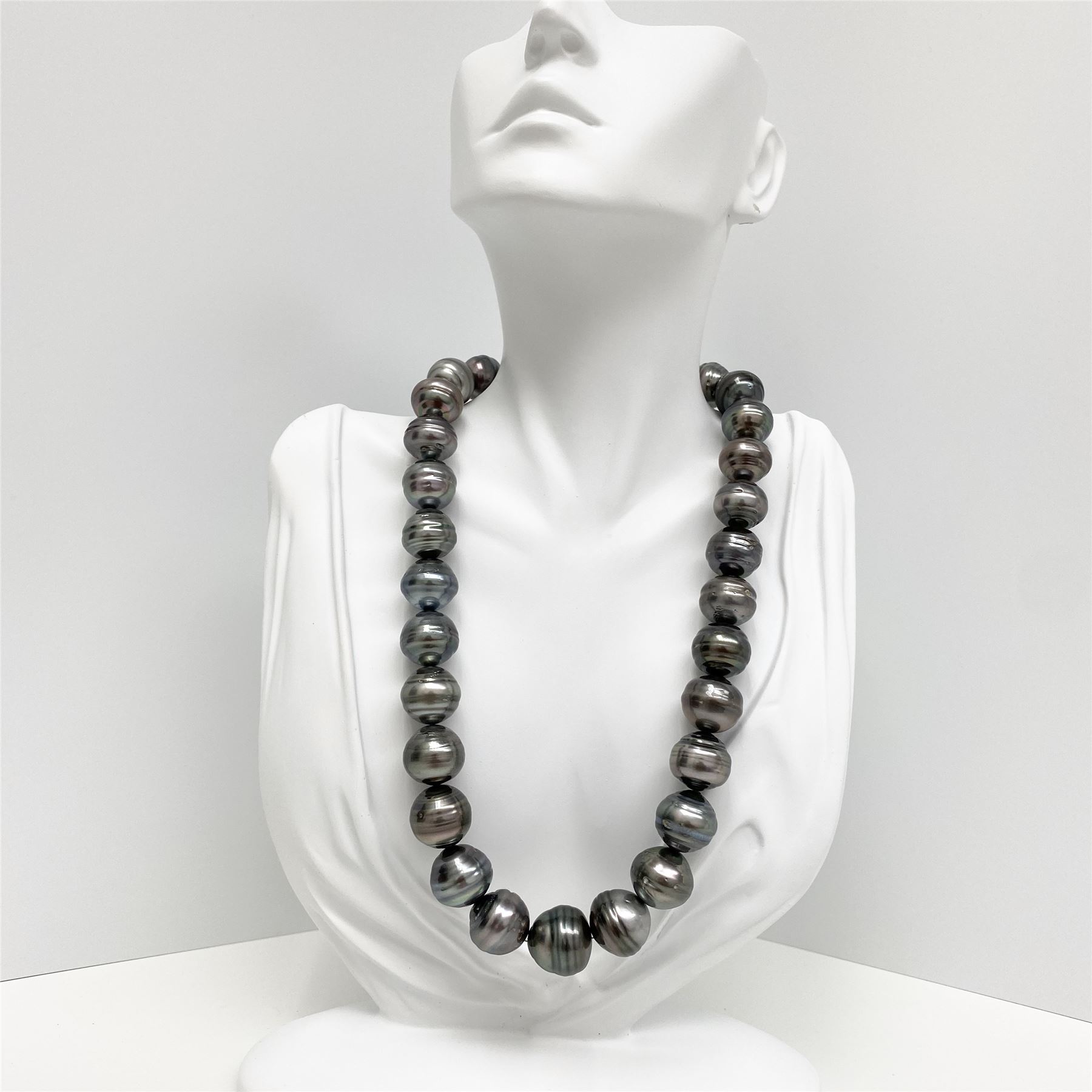 15-17mm Tahitian Circled Button/Baroque Pearl Necklace with Gold Clasp