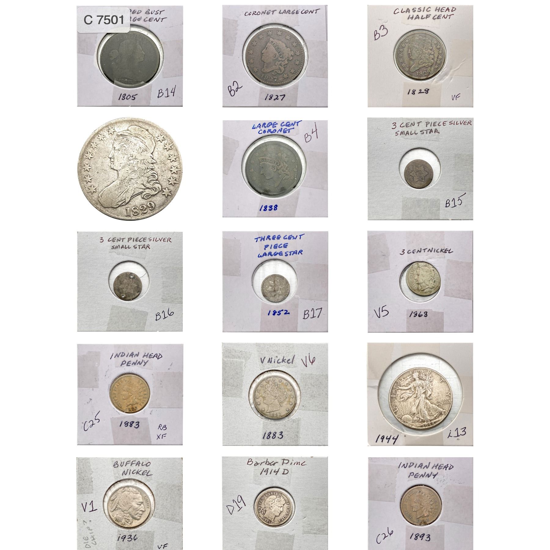[15]1805-1844 Assorted U.S. Coins [1C-50C]