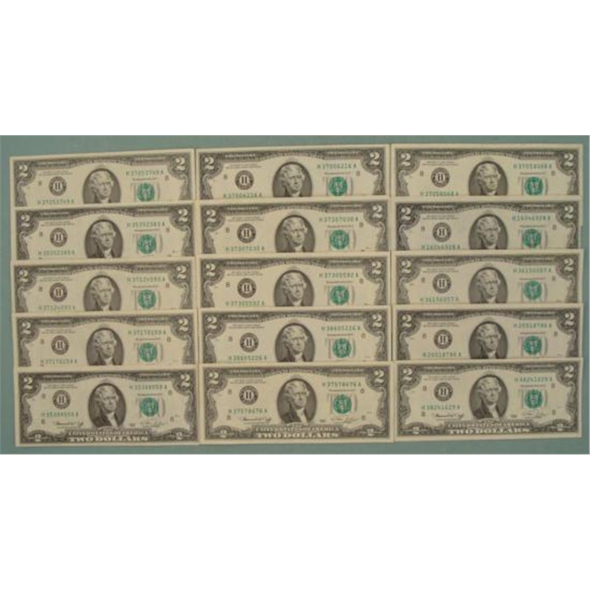 15) 1976 $2 bills * Mint: H (St. Louis) Condition: All nice bills - no holes, rips, or tears* Bills you receive may be different from those shown in the pictures