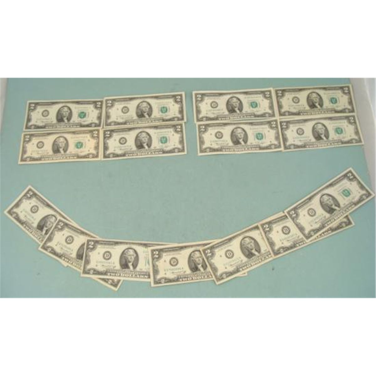 15 1976 $2 Bills * * Mint: D (Cleveland) * All nice bills with no rips, holes, or tears