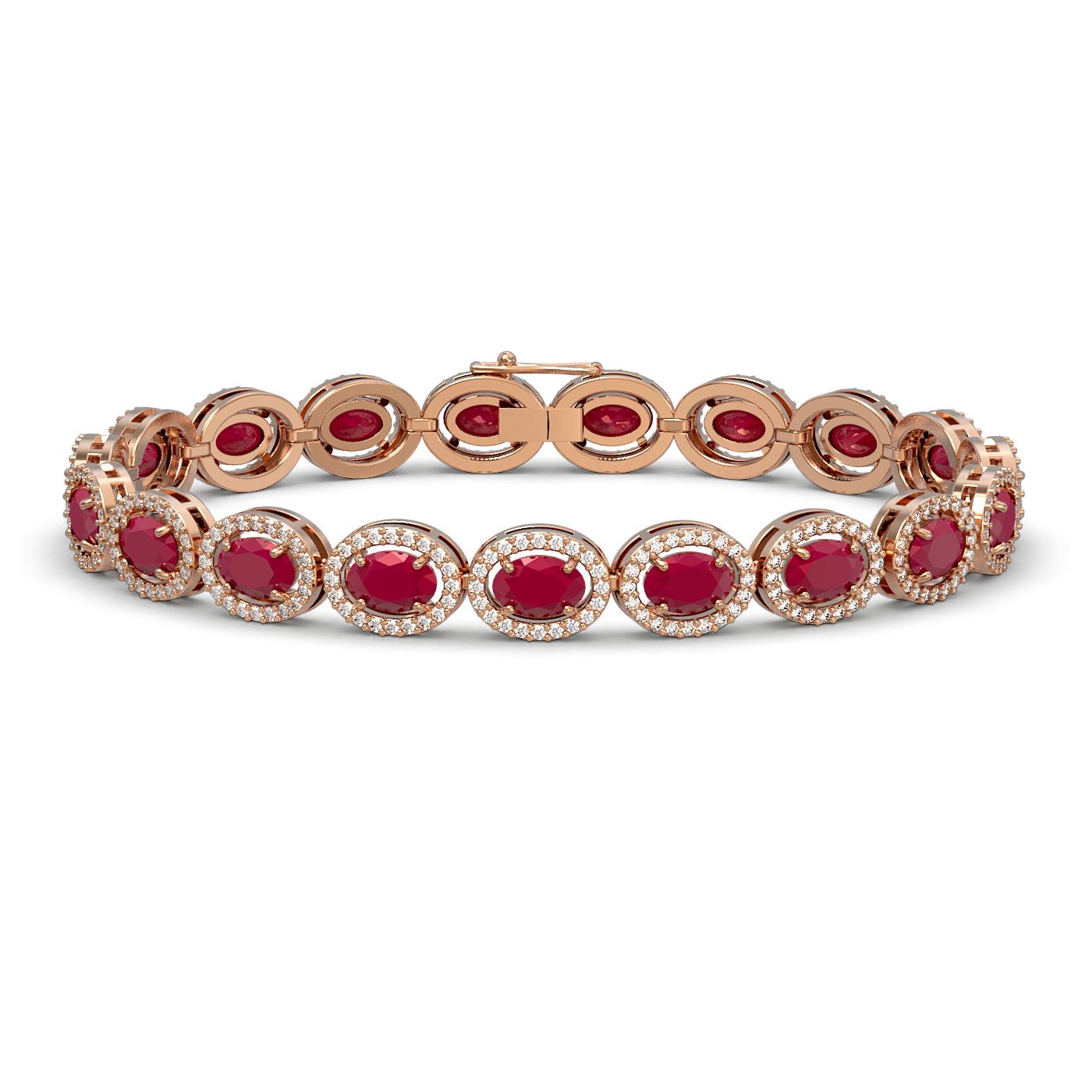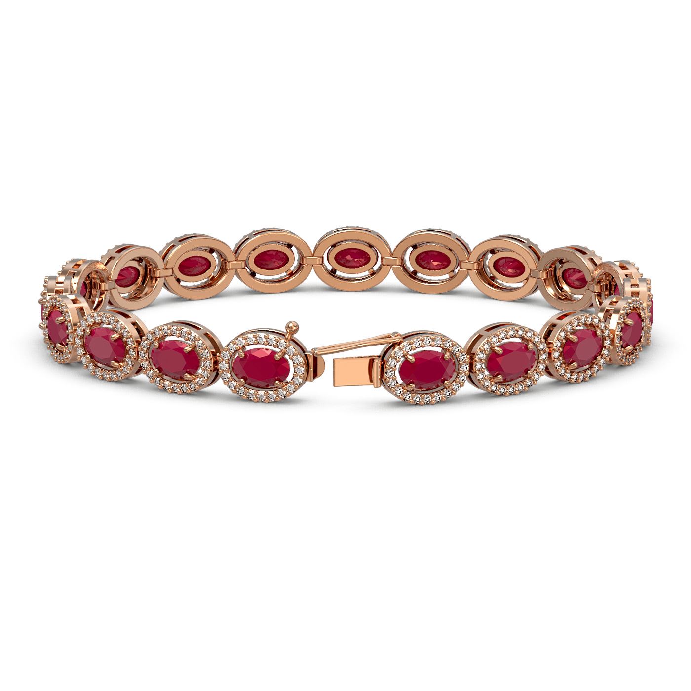 REF-255X3T -40455 ---- 15.2 CTW Ruby & Diamond Halo Bracelet 10K Rose Gold ---- Luxury Designer Brand Bracelet Appraised at $14,050 Certificate Number US40455 10k Rose gold, Bracelet Size is 7 Inches, Bracelet measuring approx. 8 mm x 7 Inches, weighing in total approx. 13 grams. Made in the USA and is stamped 10k, Main stone 12.35 carat total weight containing 19 pieces of Mid-Opaque-Deep Red color with AAA quality Oval shape cut Ruby , Stone #2 2.85 carat total weight containing 380 pieces of G-H color with VS/SI quality Round shape cut Diamond