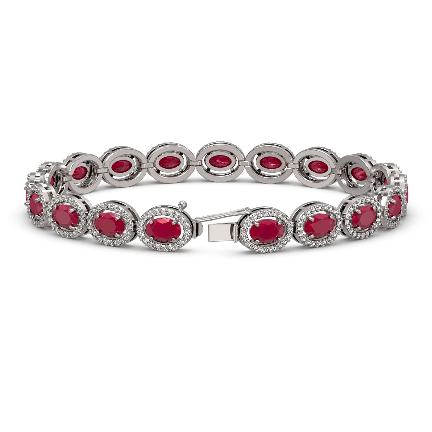 REF-255H3A -40454 ---- 15.2 CTW Ruby & Diamond Halo Bracelet 10K White Gold ---- Luxury Designer Brand Bracelet Appraised at $14,050 Certificate Number US40454 10k White gold, Bracelet Size is 7 Inches, Bracelet measuring approx. 8 mm x 7 Inches, weighing in total approx. 13 grams. Made in the USA and is stamped 10k, Main stone 12.35 carat total weight containing 19 pieces of Mid-Opaque-Deep Red color with AAA quality Oval shape cut Ruby , Stone #2 2.85 carat total weight containing 380 pieces of G-H color with VS/SI quality Round shape cut Diamond