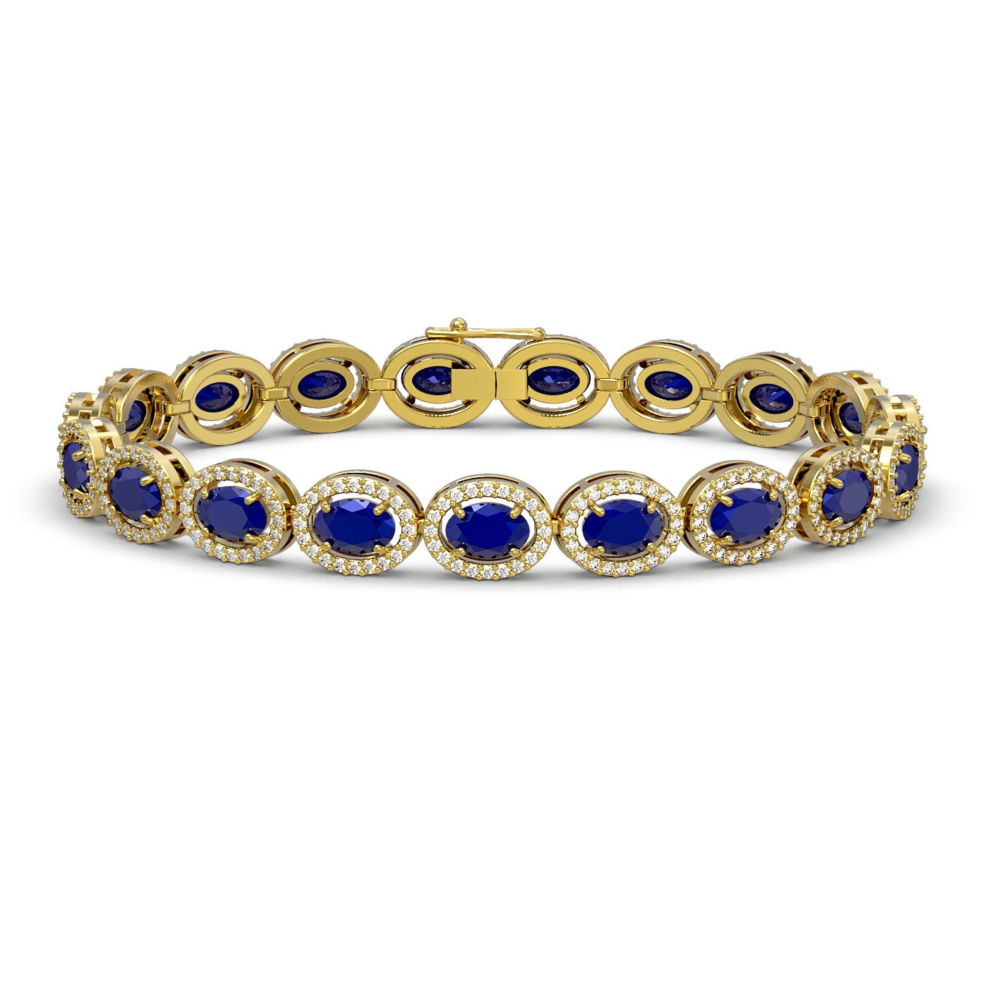 REF-244W2F -40459 ---- 15.2 CTW Sapphire & Diamond Halo Bracelet 10K Yellow Gold ---- Luxury Designer Brand Bracelet Appraised at $13,400 Certificate Number US40459 10k Yellow gold, Bracelet Size is 7 Inches, Bracelet measuring approx. 8 mm x 7 Inches, weighing in total approx. 13 grams. Made in the USA and is stamped 10k, Main stone 12.35 carat total weight containing 19 pieces of Mid-Opaque-Deep Blue color with AAA quality Oval shape cut Sapphire , Stone #2 2.85 carat total weight containing 380 pieces of G-H color with VS/SI quality Round shape cut Diamond