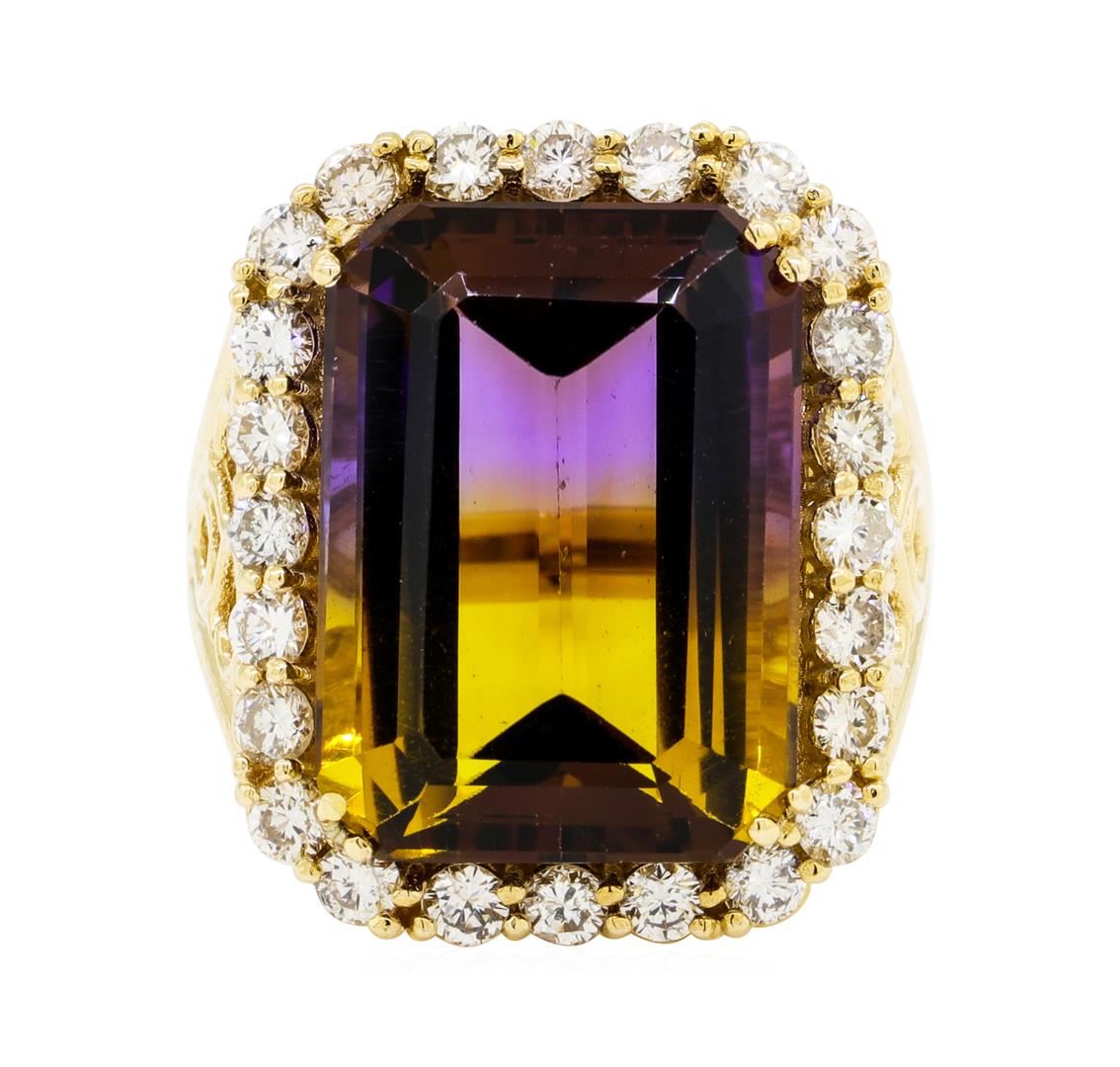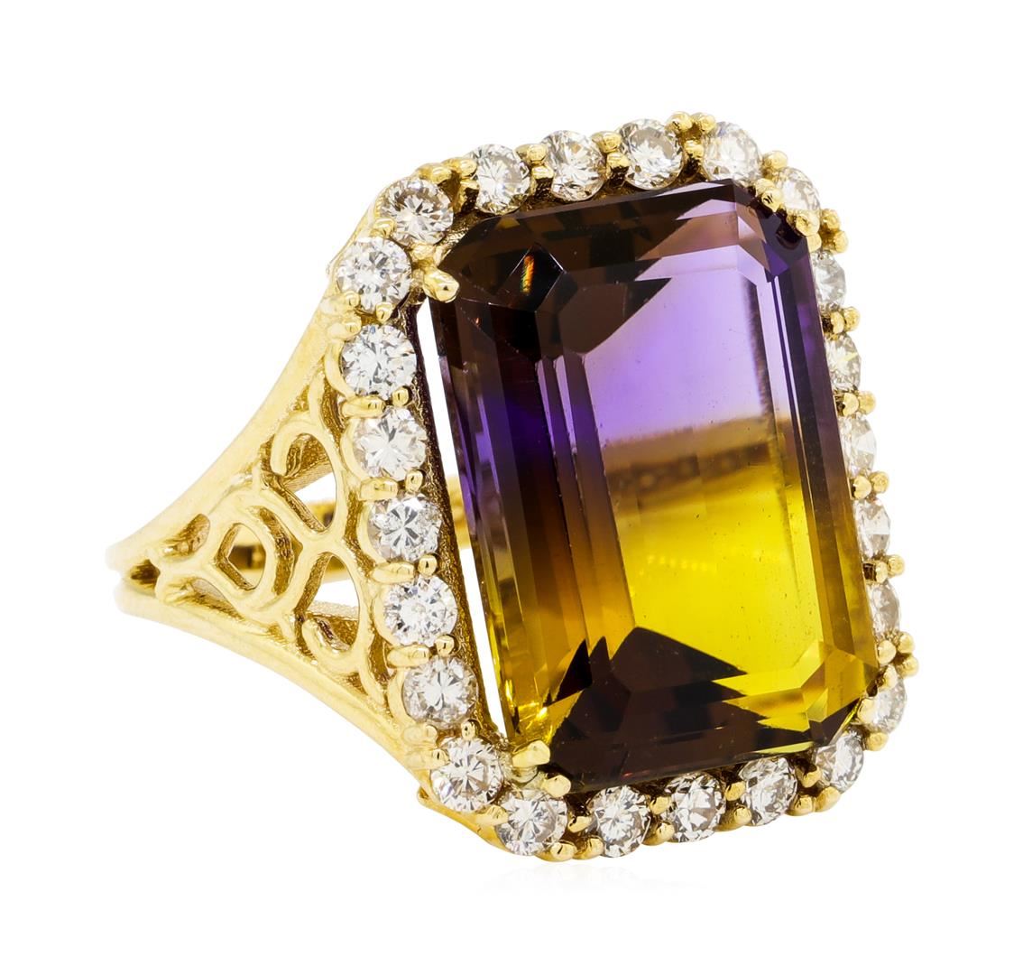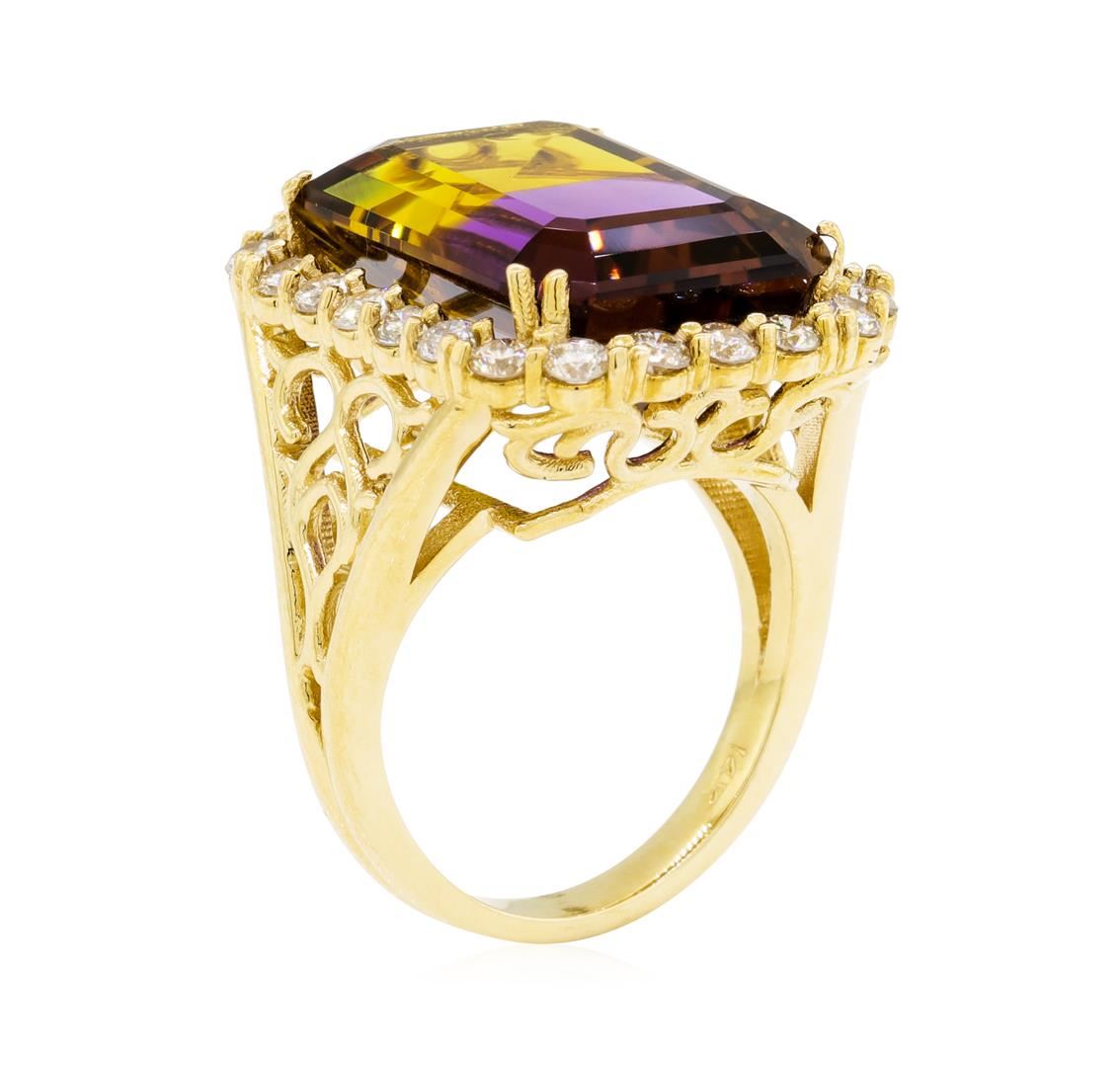 One electronically tested 14KT yellow gold lady's cast fashion ring with a basket halo with a bright polish finish. The featured lady's ring has a shank measuring 2.60 millimeters wide. Identified with markings of '14K'. Condition is new, good workmanship GAS Appraised at $10,740.00.