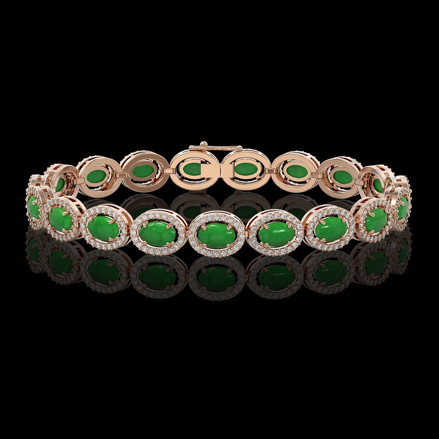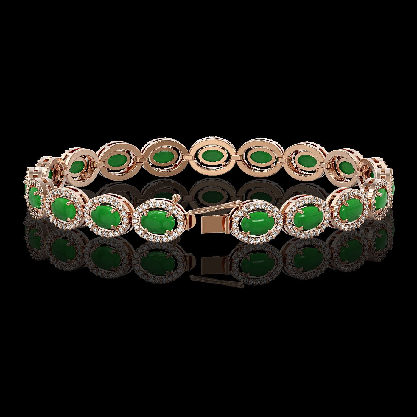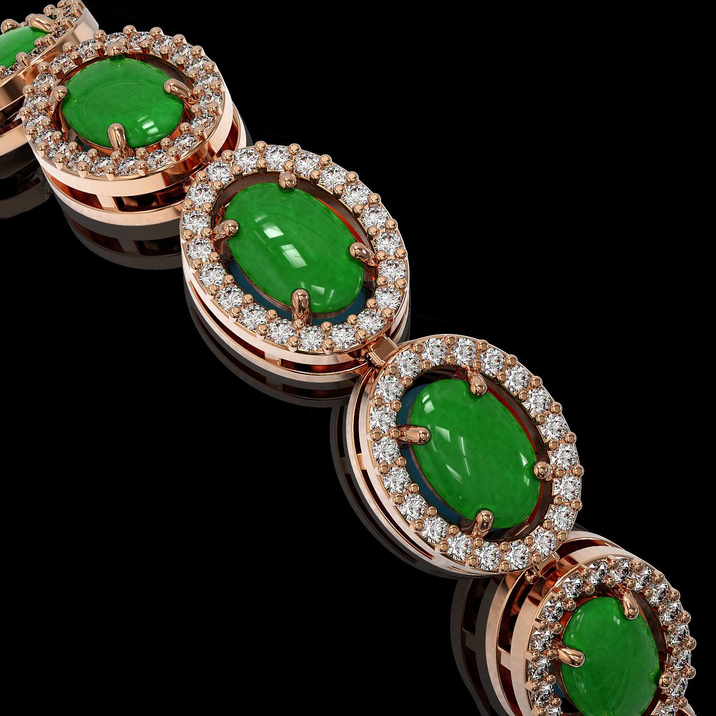 REF-278N2F - SKU: 46002 ---- 15.20 ctw Jade & Diamond Micro Pave Halo Bracelet 10k Rose Gold