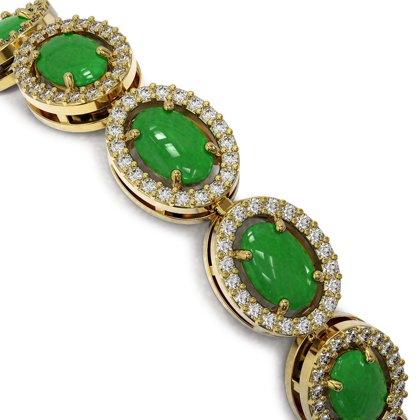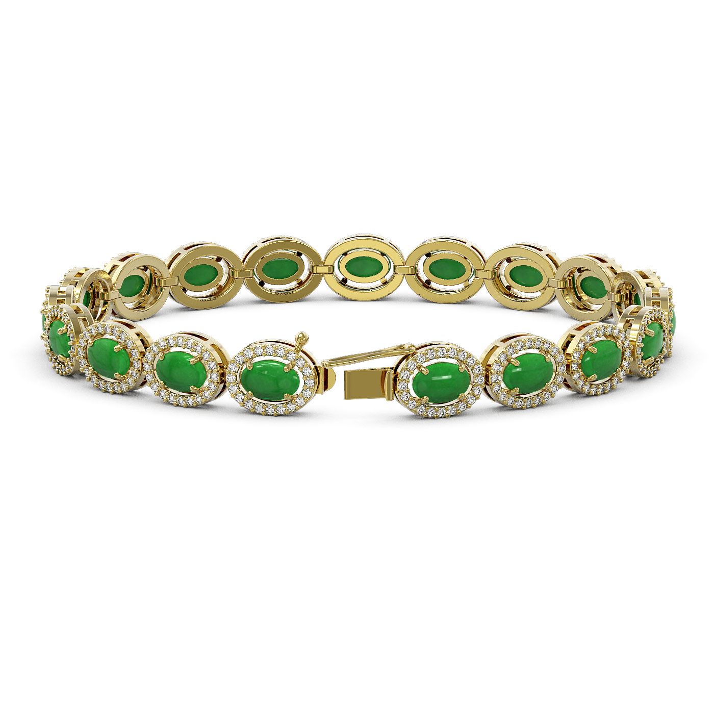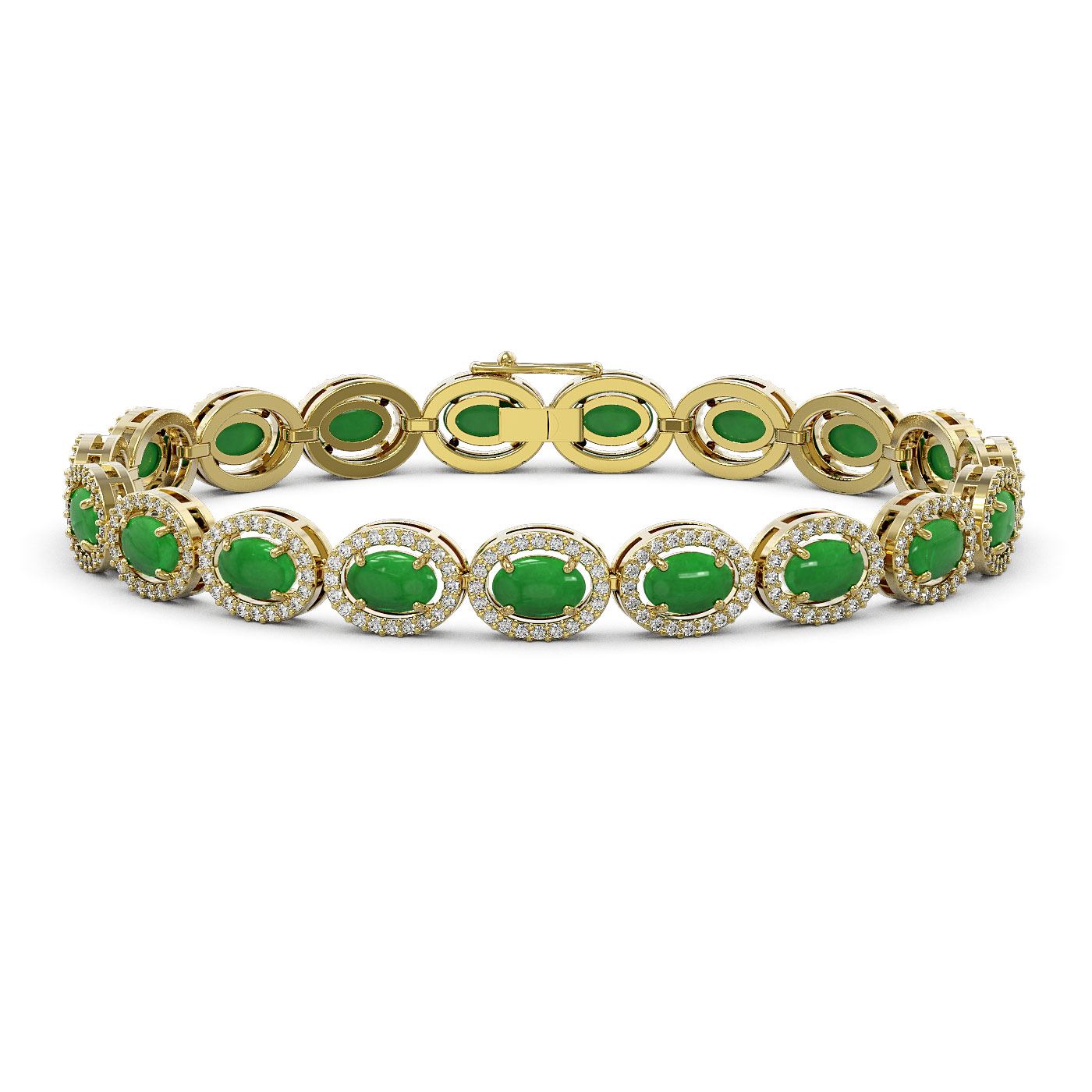 SKU: 46003 ---- 15.20 ctw Jade & Diamond Micro Pave Halo Bracelet 10k Yellow Gold