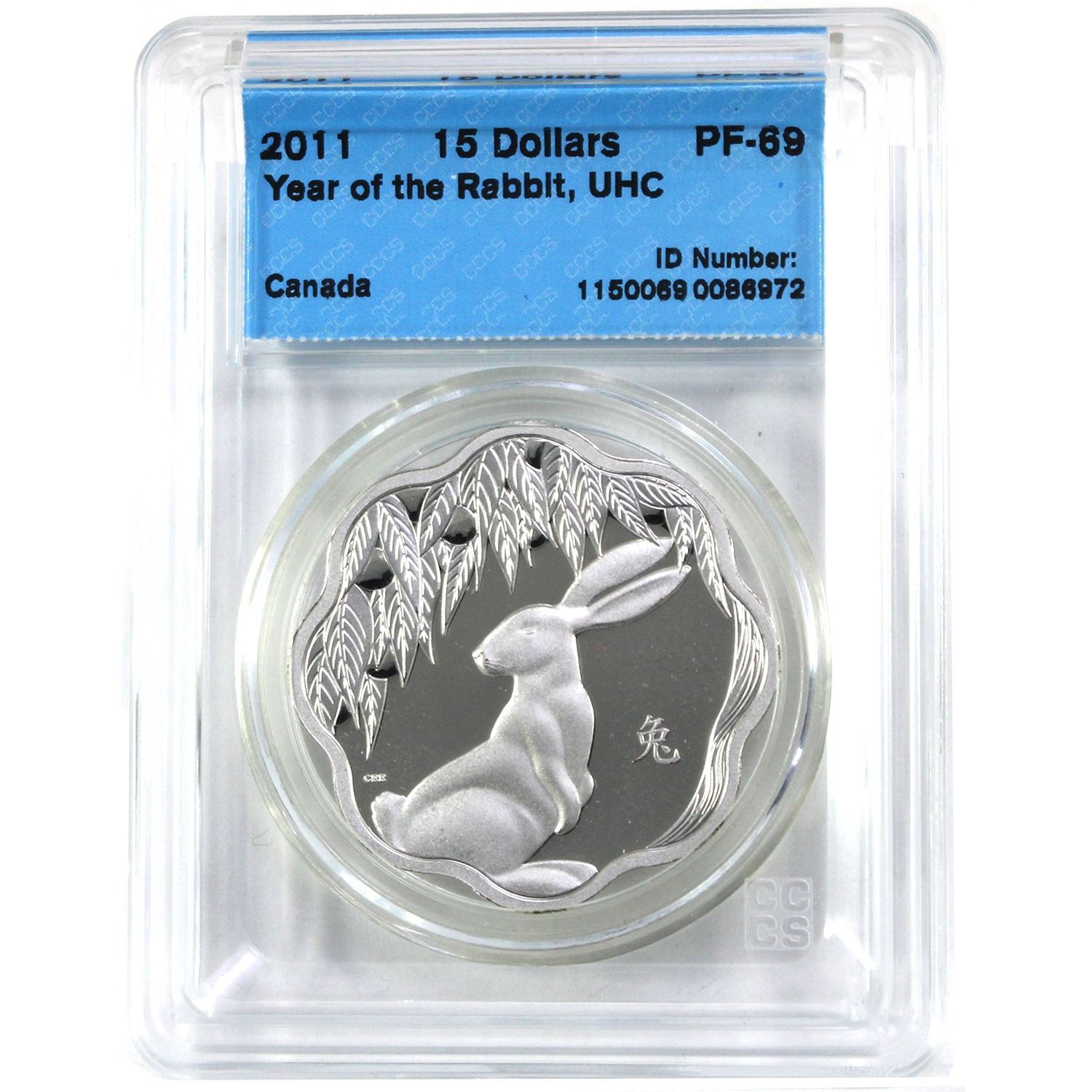 $15 2011 Lunar Lotus-Year of the Rabbit CCCS PF69 UHC with COA. 26.29g Sterling Silver