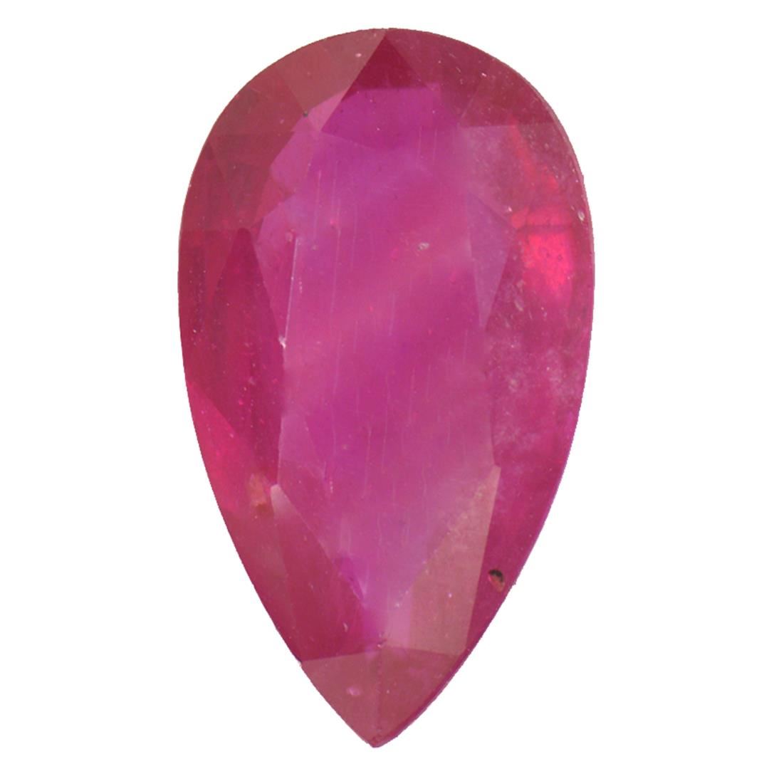 One pear cut natural ruby, measuring 21.70 x 12.90 x 6.00mm, exact weight 15.21ct., clarity is heavily included, type II, medium dark, moderately strong, slightly purplish red color, (GIA slpR 6/4), cut is good. Transmitting light somewhat diffusely, transparent to translucent, Indications of laboratory high temperature heat treatment, with glass & flux additives. Low tolerance to rhodium plating, repolishing the surface & ultrasonic cleaning. Westfield Appraised at $2,110.00.
