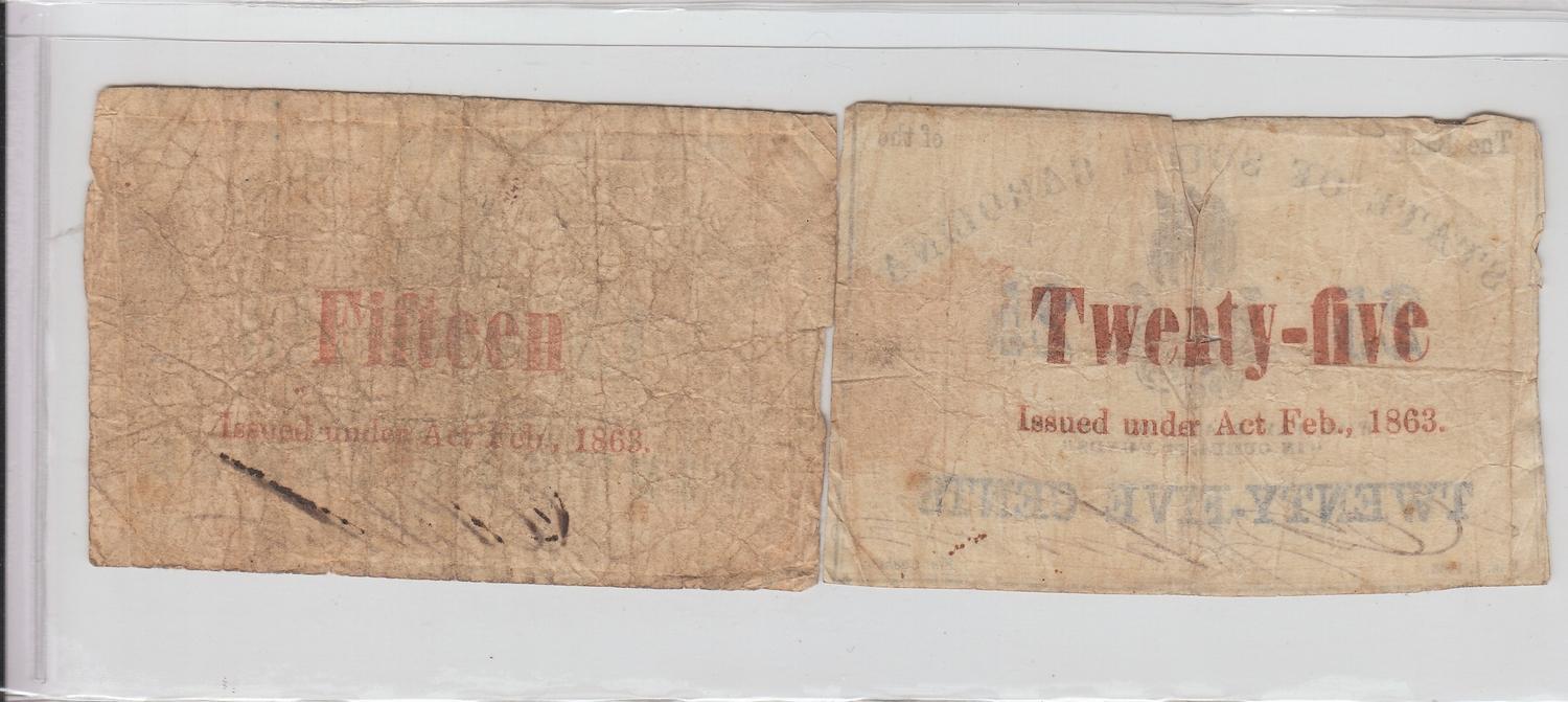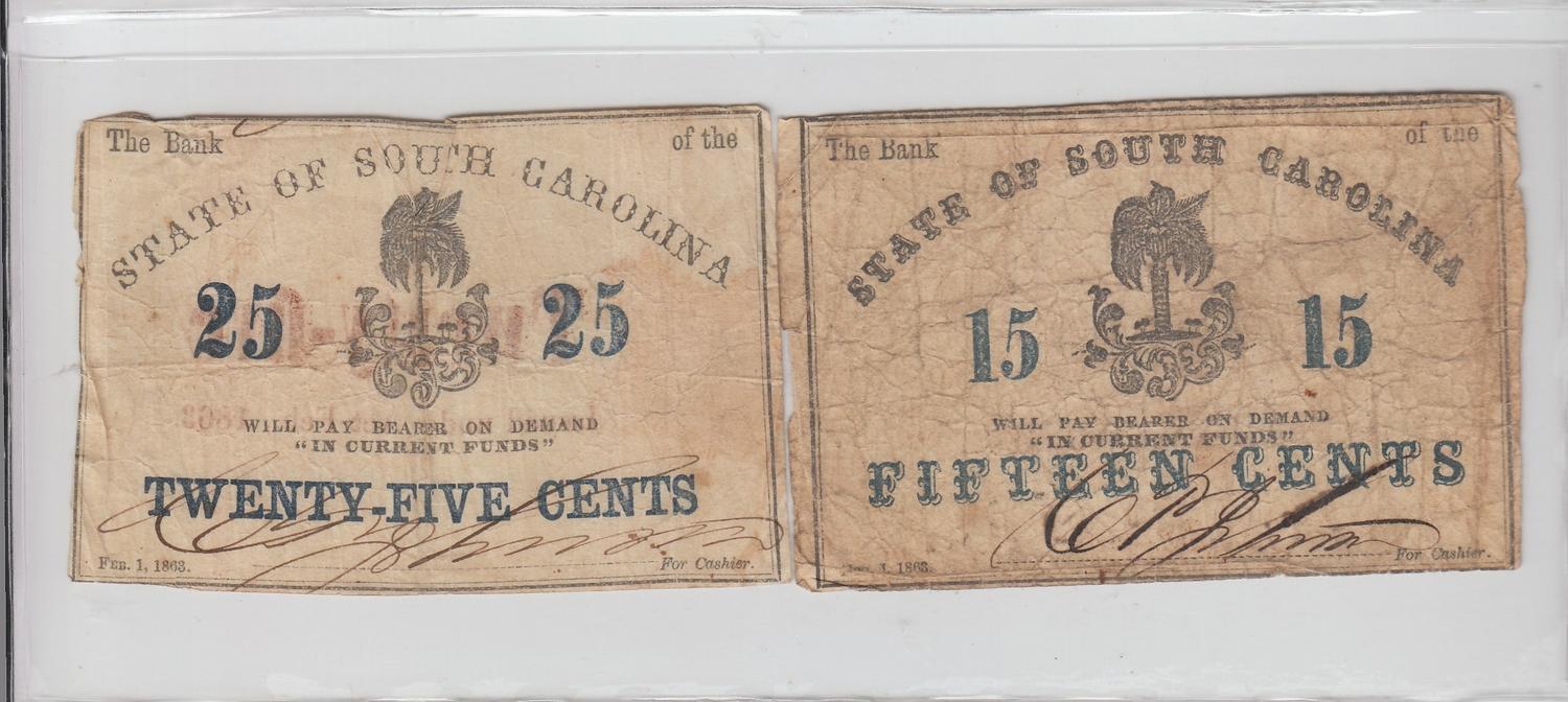 15 & 25 CENT SOUTH CAROLINA OBSOLETES 1863