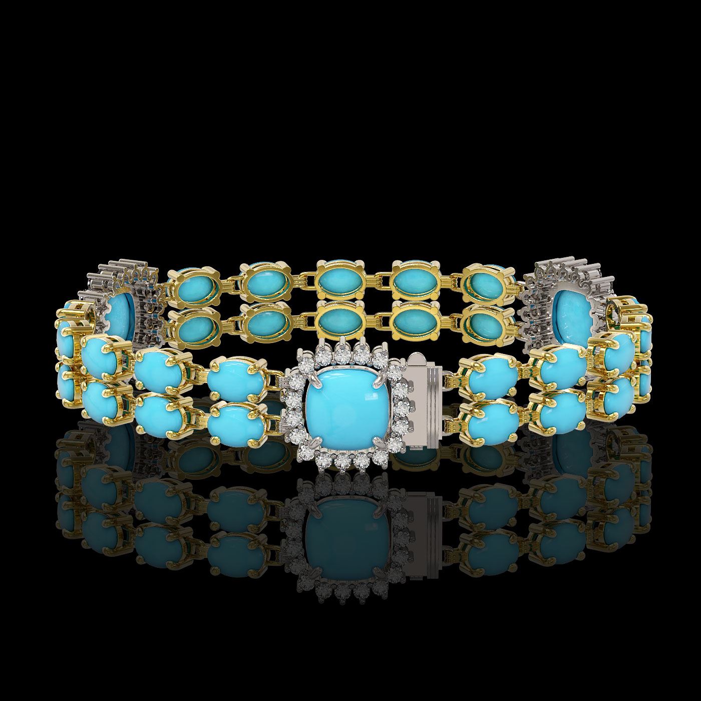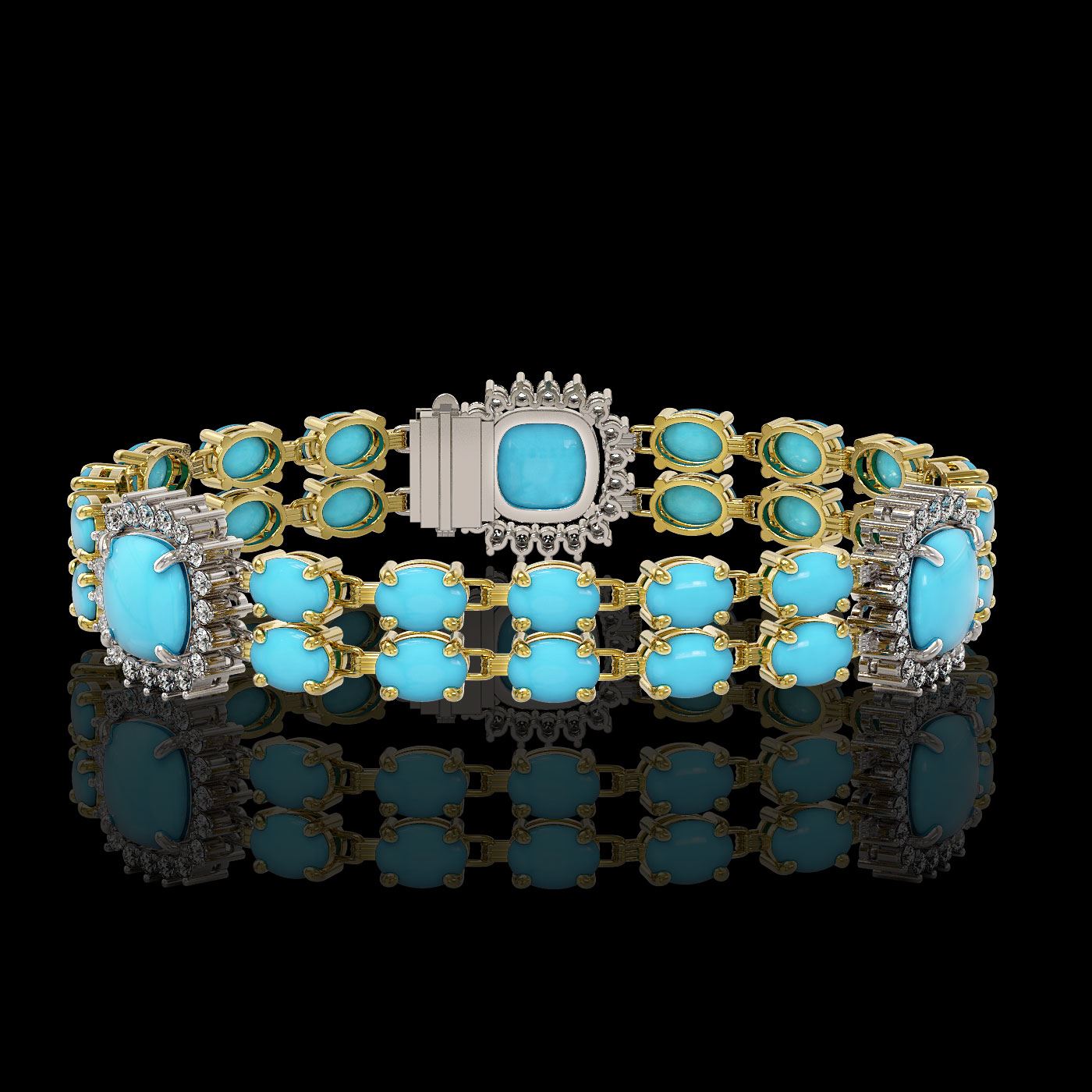 REF-263F6M - SKU: 44791 ---- 15.27 ctw Turquoise & Diamond Bracelet 14K Yellow Gold