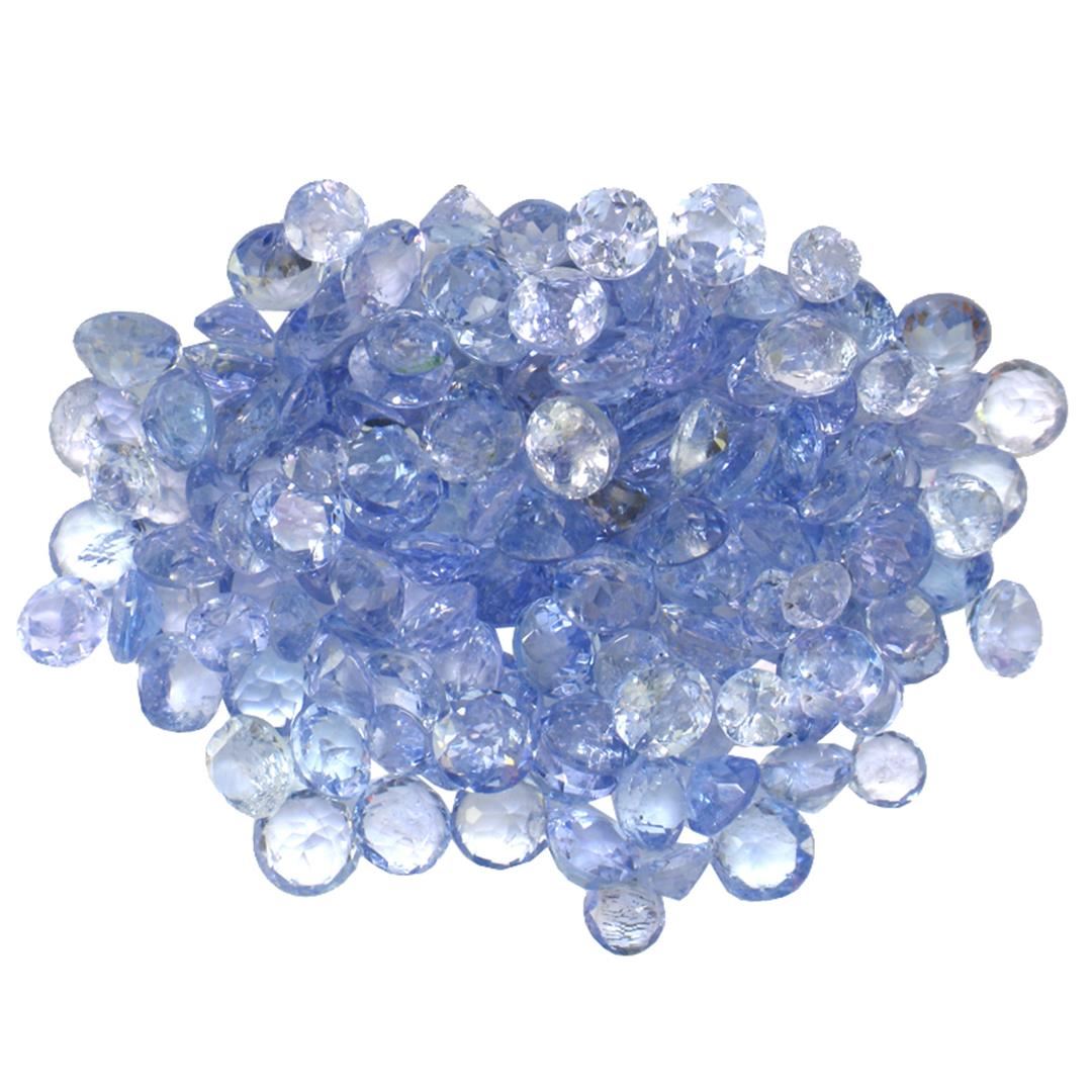 One hundred thirty round mixed cut natural tanzanites exact total weight 15.27ct., clarity is slightly included, type I, medium dark, very slightly grayish, bluish violet color, (GIA bV 6/3), cut is good. Transmitting light with a minimum of distortion, transparent. Naturally occurring internal & external characteristics are present. Color grade is an average for the group. Tanzanite is a very rare gemstone that is only found in the country of Tanzania. Originally discovered in 1967. Tiffany & Company, named the stone Tanzanite. It is found in the Usumburu Mountains that border the Umba Valley of northern Tanzania. Tanzanite occurs in gray, brown, violet, blue, reddish-purple, & green. The gem is interesting because of its exceptional pleochroism. Rotated in different directions a tanzanite will exhibit multiple changes of color. Tanzanite has a low tolerance to ultrasonic cleaning, and should not be cleaned using this method. Westfield Appraised at $1,470.00.