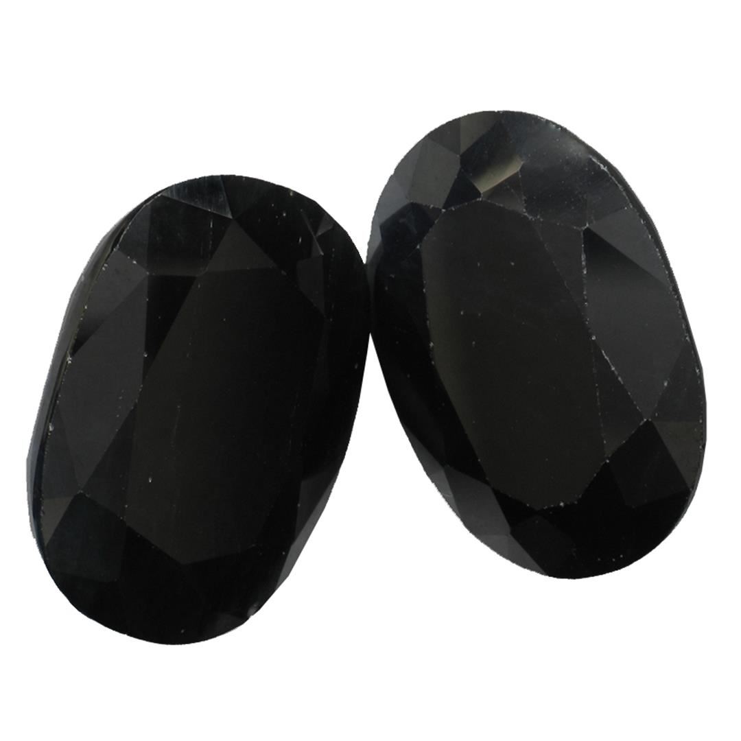 Two oval mixed cut natural blue sapphires, measuring 14.00 x 10.00 x 6.50mm, exact total weight 15.28ct., clarity is heavily included, type II, very dark, very slightly grayish, blue color, (GIA B 8/3), cut is good. Measurements are an average for the group. Transmitting light very diffusely, opaque, Naturally occurring internal & external characteristics are present, Indications of multiple laboratory enhancements, including high temperature heat treatment. Westfield Appraised at $1,405.00.