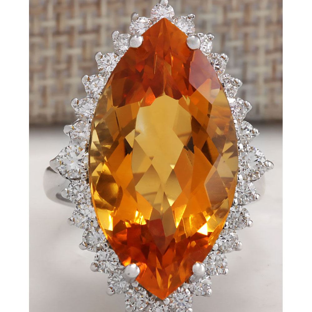 15.34 CTW Natural Citrine And Diamond Ring 14K Solid White Gold
