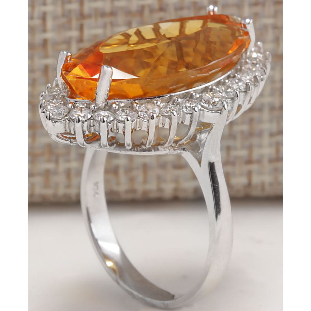 15.34 CTW Natural Citrine And Diamond Ring 14K Solid White Gold