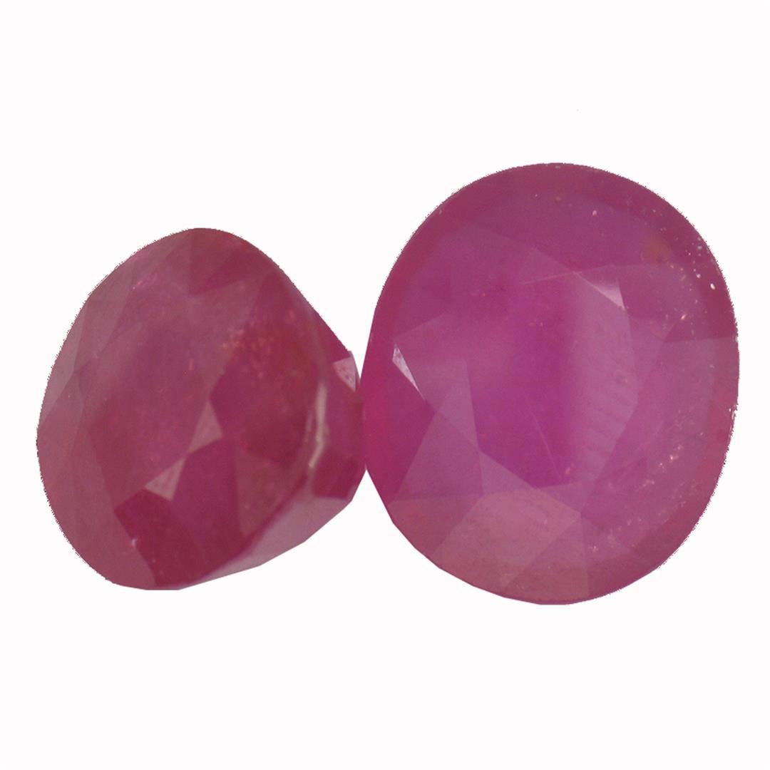 Two oval mixed cut natural rubies, measuring 12.50 x 10.00 x 5.70mm, exact total weight 15.38ct., clarity is heavily included, type II, dark, very slightly brownish, slightly purplish red color, (GIA slpR 7/3), cut is good. Transmitting light somewhat diffusely, translucent. Naturally occurring internal & external characteristics are present. Indications of laboratory high temperature heat treatment, with glass & flux additives. Ruby has a low tolerance to rhodium plating, repolishing the surface, & ultrasonic cleaning. Westfield Appraised at $1,795.00.