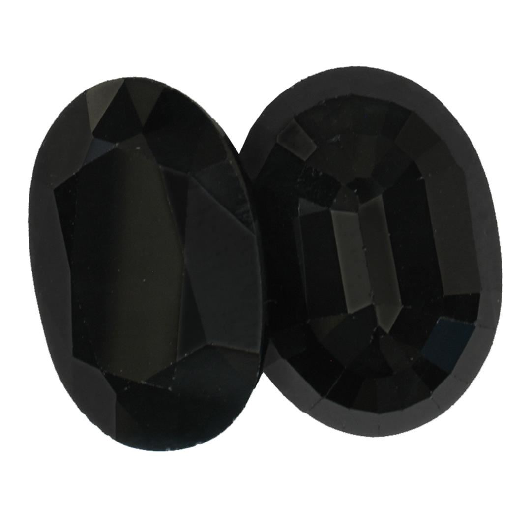 Two oval mixed cut natural blue sapphires, measuring 14.00 x 10.00 x 6.50mm, exact total weight 15.39ct., clarity is heavily included, type II, very dark, very slightly grayish, blue color, (GIA B 8/3), cut is good. Measurements are an average for the group. Transmitting light very diffusely, opaque, Naturally occurring internal & external characteristics are present, Indications of multiple laboratory enhancements, including high temperature heat treatment. Westfield Appraised at $1,415.00.