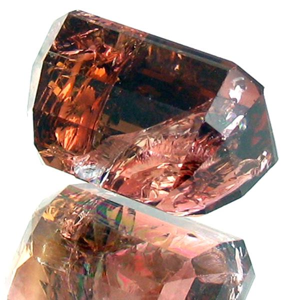 Excellent rose orange color RARE copper-bearing specimen emerald cut: COPPER in tourmaline is rare and highly prized, it makes the stone color much more vivid (sometimes neon-like) and causes the stone to mimick the reflectivity of diamond; lab quality ev