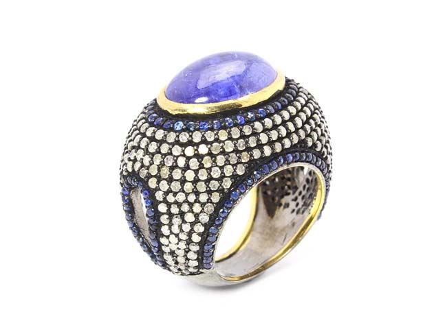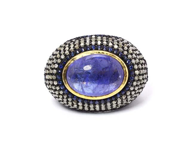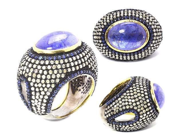 TANZANITE, BLUE SAPPHIRE AND DIAMOND RING/Diamond Count 1:/Diamond Total Carat :3.94/Diamond Color & Clarity:J-L/I1-I2 Single Cut /Diamond Count 2:/Diamond 2 CTW:/Diamond Count 3:/Gemstone Count 1:/Gemstone CTW:11.49/Gemstone Dimension:/Gemstone Shape:Oval- Tanzanite/Round-Sapphire /Gemstone Count 2:/Gemstone Shape:/Ring Dimension:/Metal Type 1:14kYellow Gold :Gram Weight:0.96/Metal Type 2:over0.925Sterling Silver / Weight Gram:18/Gross Weight :20.51/Ring Size:7.5