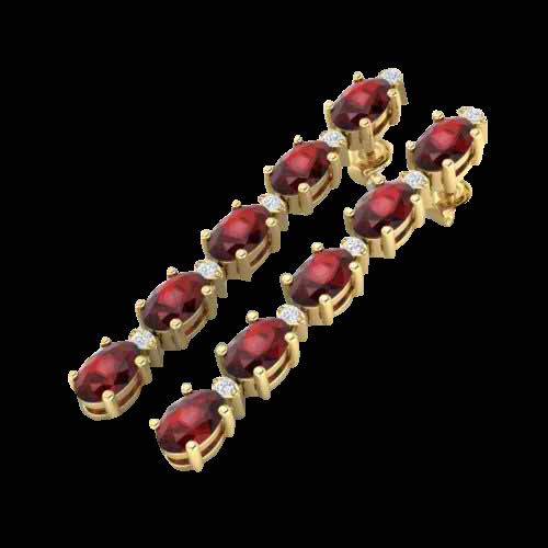 REF-74W8F -29482 ---- 15.47 CTW Garnet & VS/SI Certified Diamond Tennis Earrings 10K Yellow Gold ---- Luxury Designer Brand Earring Appraised at $4,950 Certificate Number US29482 10k Yellow gold, Earring Size is 2 1/4 Inches, Earring measuring approx. 7 mm X 2 1/4 inches, weighing in total approx. 7 grams. Made in the USA and is stamped 10k, Main stone 15 carat total weight containing 10 pieces of Saturated purplish Red color with AAA quality Oval shape cut Garnet , Stone #2 0.47 carat total weight containing 10 pieces of H-I color with VS/SI quality Round shape cut Diamond