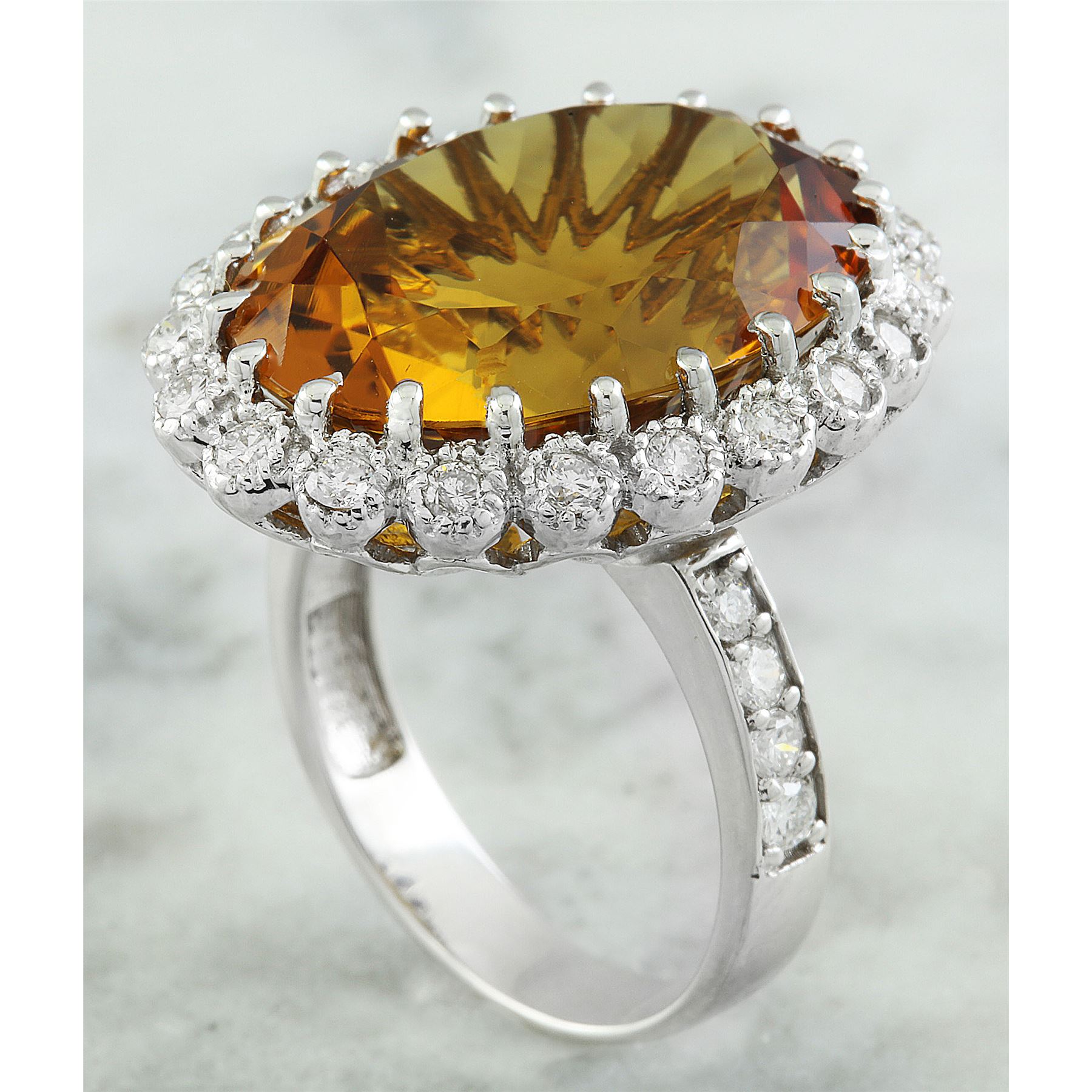 15.50 CTW Citrine 18K White Gold Diamond Ring