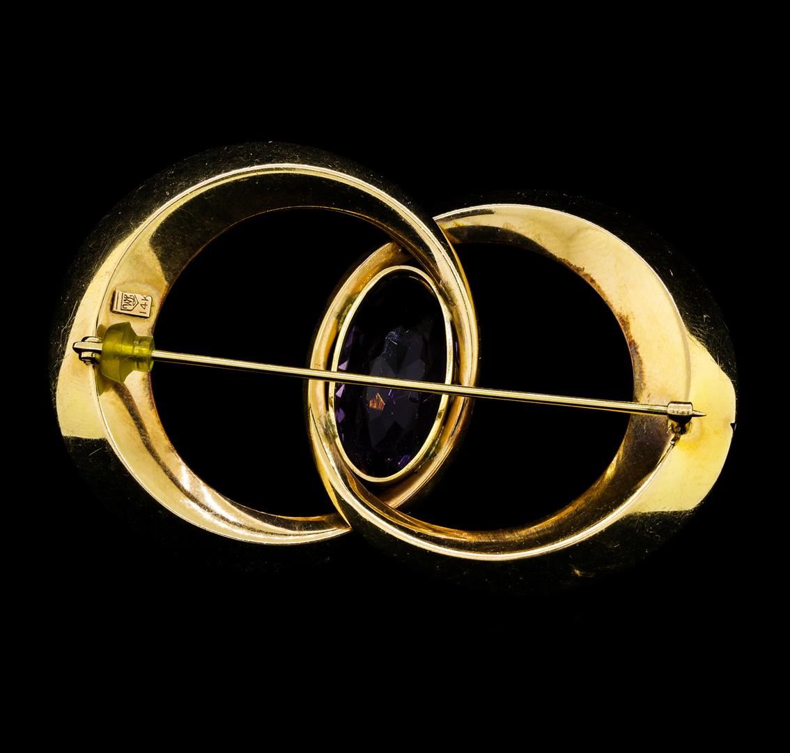 One lady's pin with an interconnected circles motif featuring: 14KT yellow gold weighing 18.4 grams containing one amethyst weighing approximately 15.50ct.
