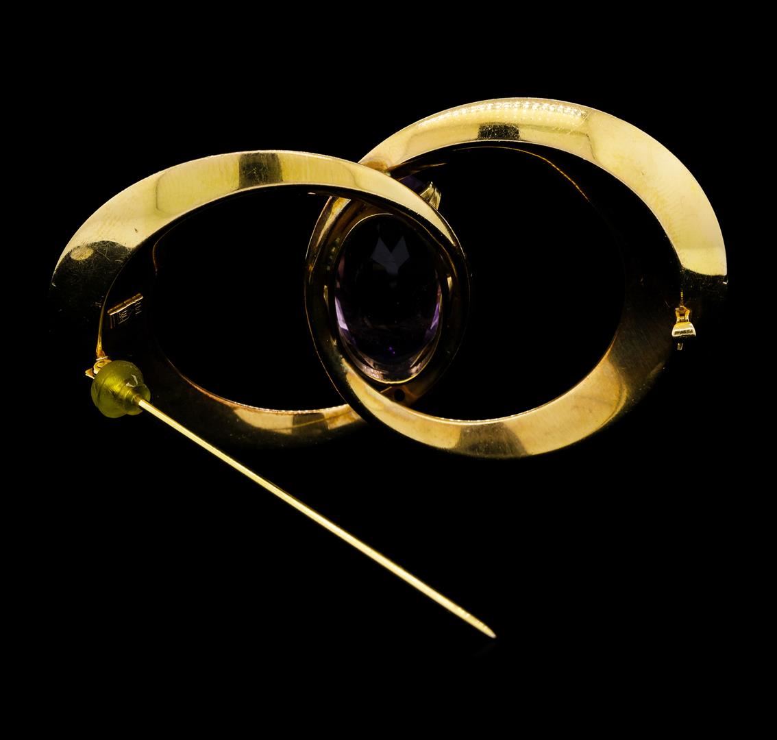 One lady's pin with an interconnected circles motif featuring: 14KT yellow gold weighing 18.4 grams containing one amethyst weighing approximately 15.50ct.