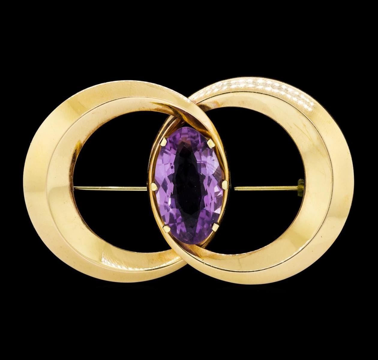 One lady's pin with an interconnected circles motif featuring: 14KT yellow gold weighing 18.4 grams containing one amethyst weighing approximately 15.50ct.
